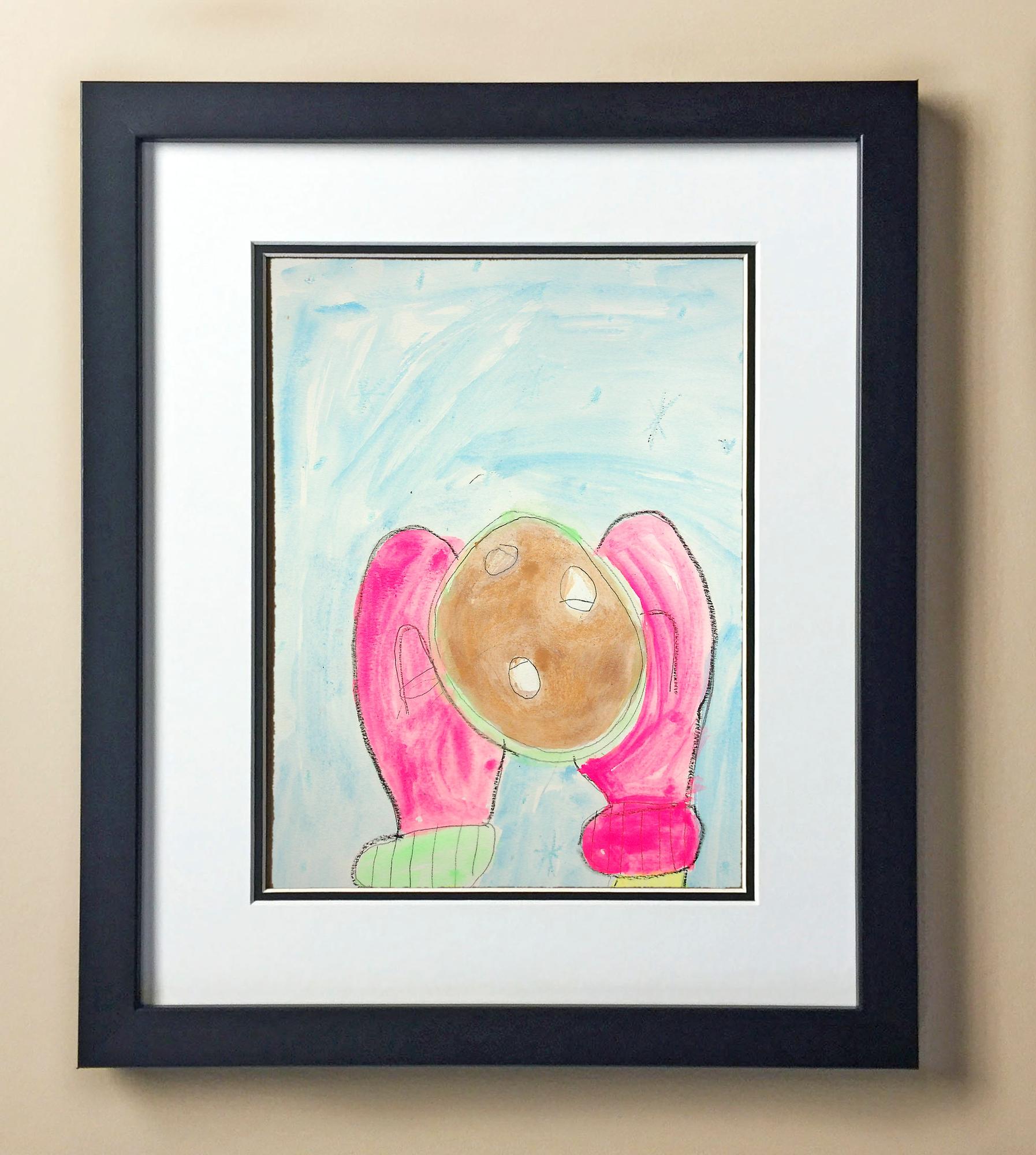 Included with the purchase is the Students Artwork, Frame, double matboard, shatter proof plexiglass, and a ready to hang backerboard with turnbuttons