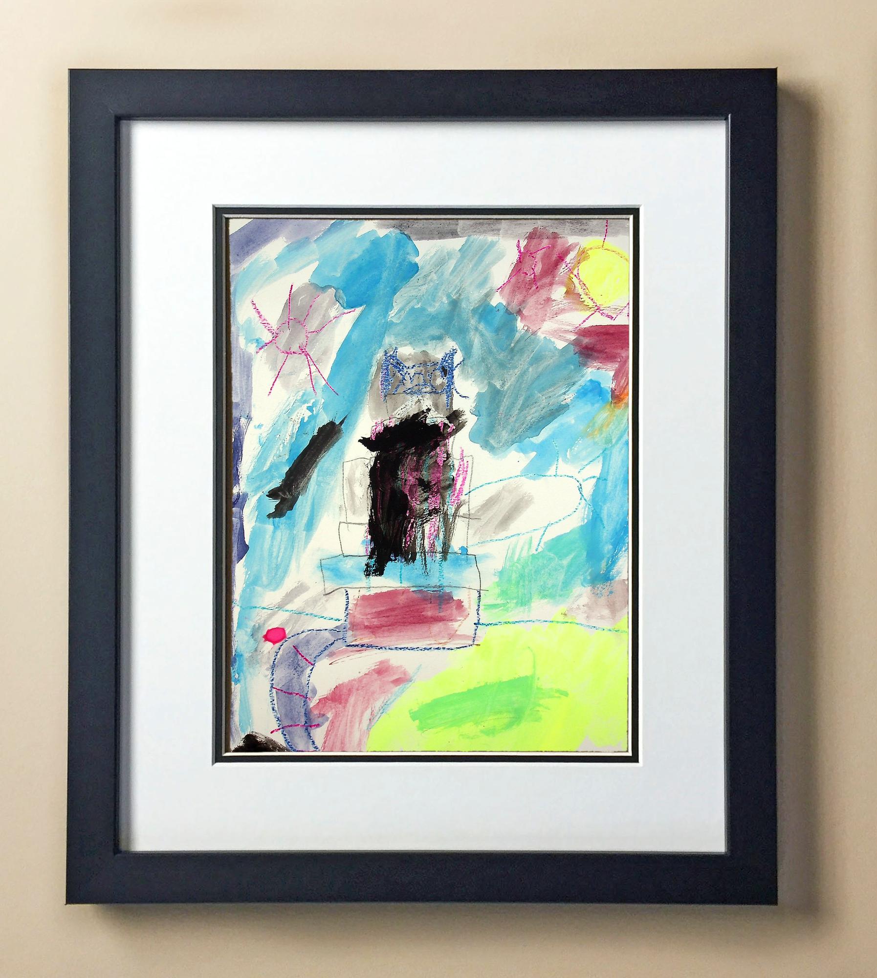 Included with the purchase is the Students Artwork, Frame, double matboard, shatter proof plexiglass, and a ready to hang backerboard with turnbuttons