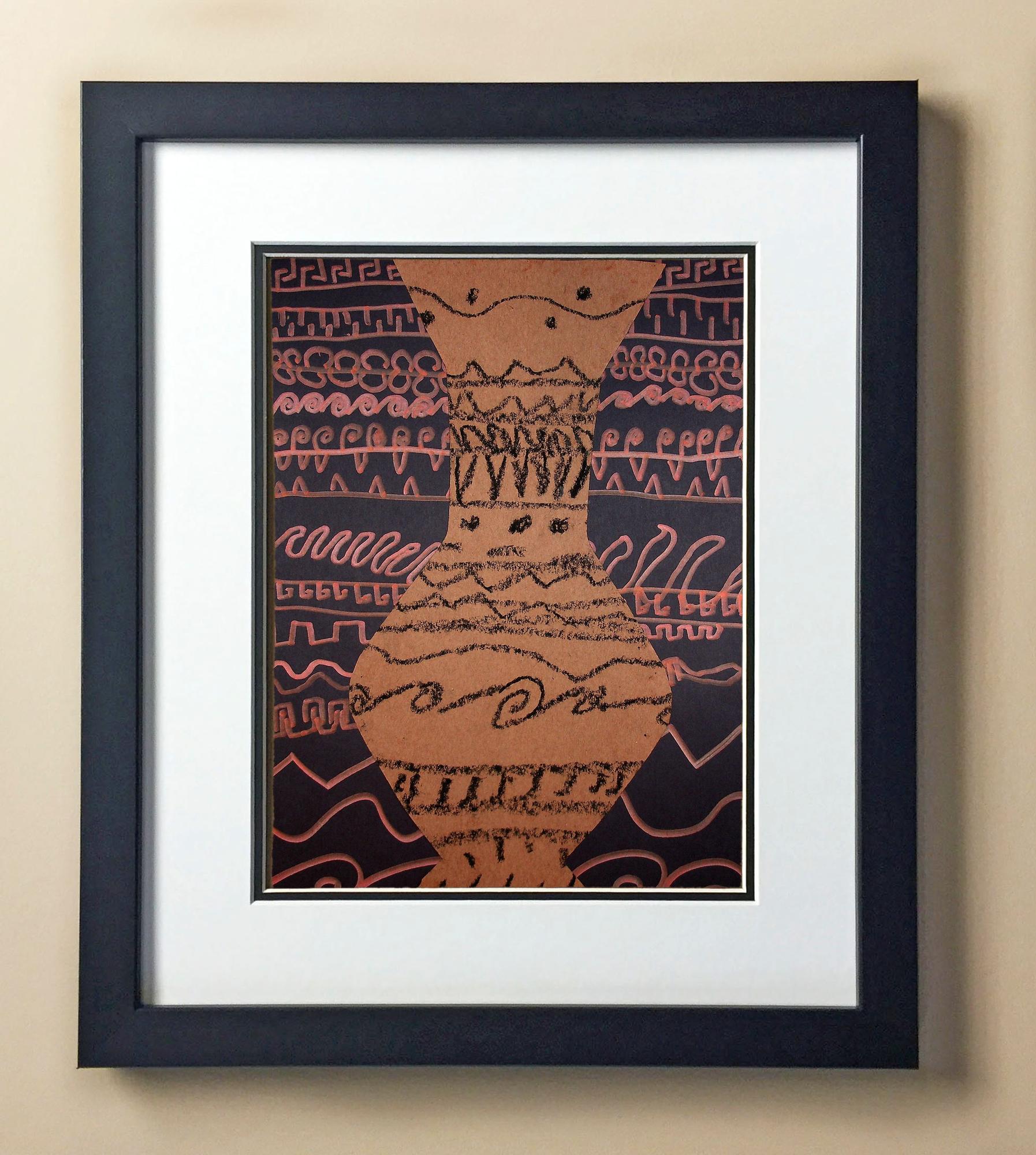 Included with the purchase is the Students Artwork, Frame, double matboard, shatter proof plexiglass, and a ready to hang backerboard with turnbuttons