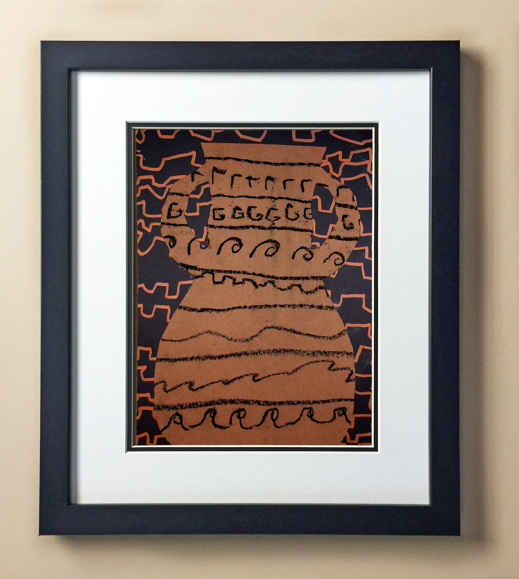 Included with the purchase is the Students Artwork, Frame, double matboard, shatter proof plexiglass, and a ready to hang backerboard with turnbuttons