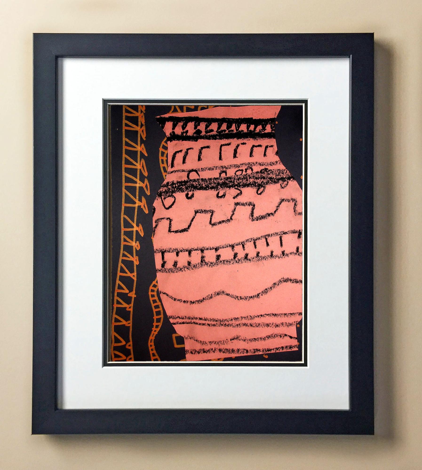 Included with the purchase is the Students Artwork, Frame, double matboard, shatter proof plexiglass, and a ready to hang backerboard with turnbuttons