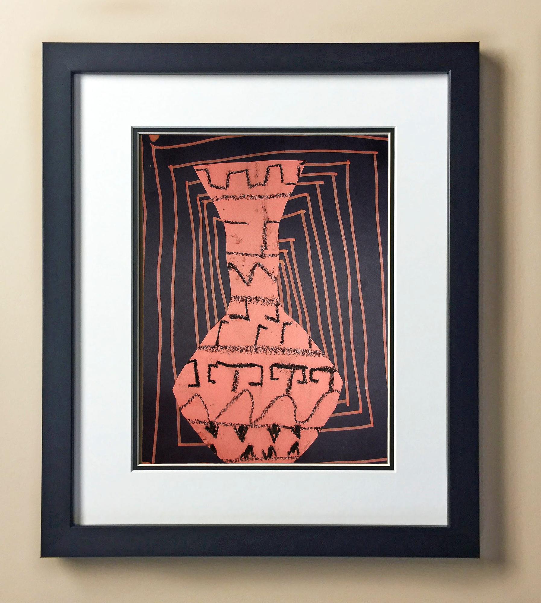 Included with the purchase is the Students Artwork, Frame, double matboard, shatter proof plexiglass, and a ready to hang backerboard with turnbuttons