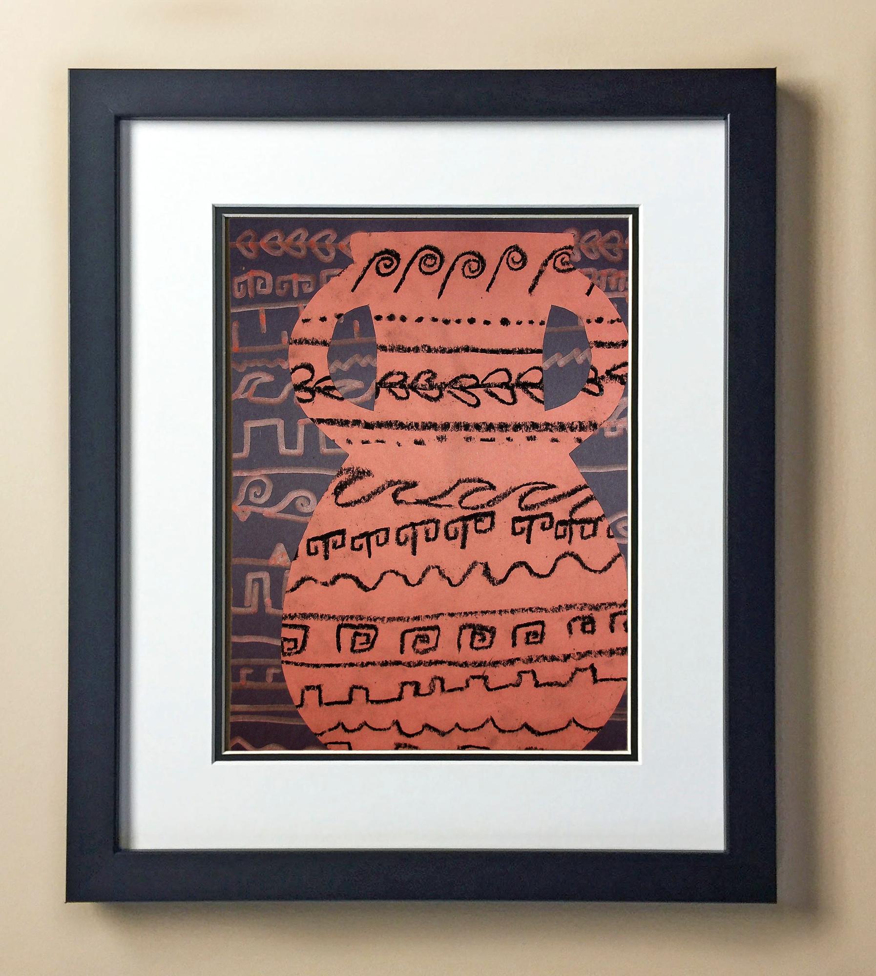 Included with the purchase is the Students Artwork, Frame, double matboard, shatter proof plexiglass, and a ready to hang backerboard with turnbuttons