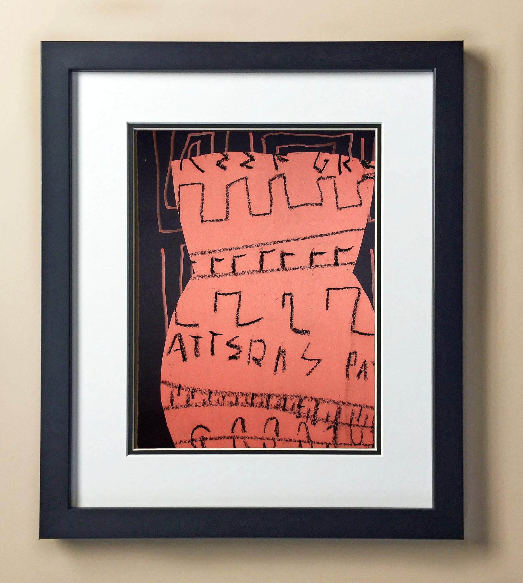 Included with the purchase is the Students Artwork, Frame, double matboard, shatter proof plexiglass, and a ready to hang backerboard with turnbuttons