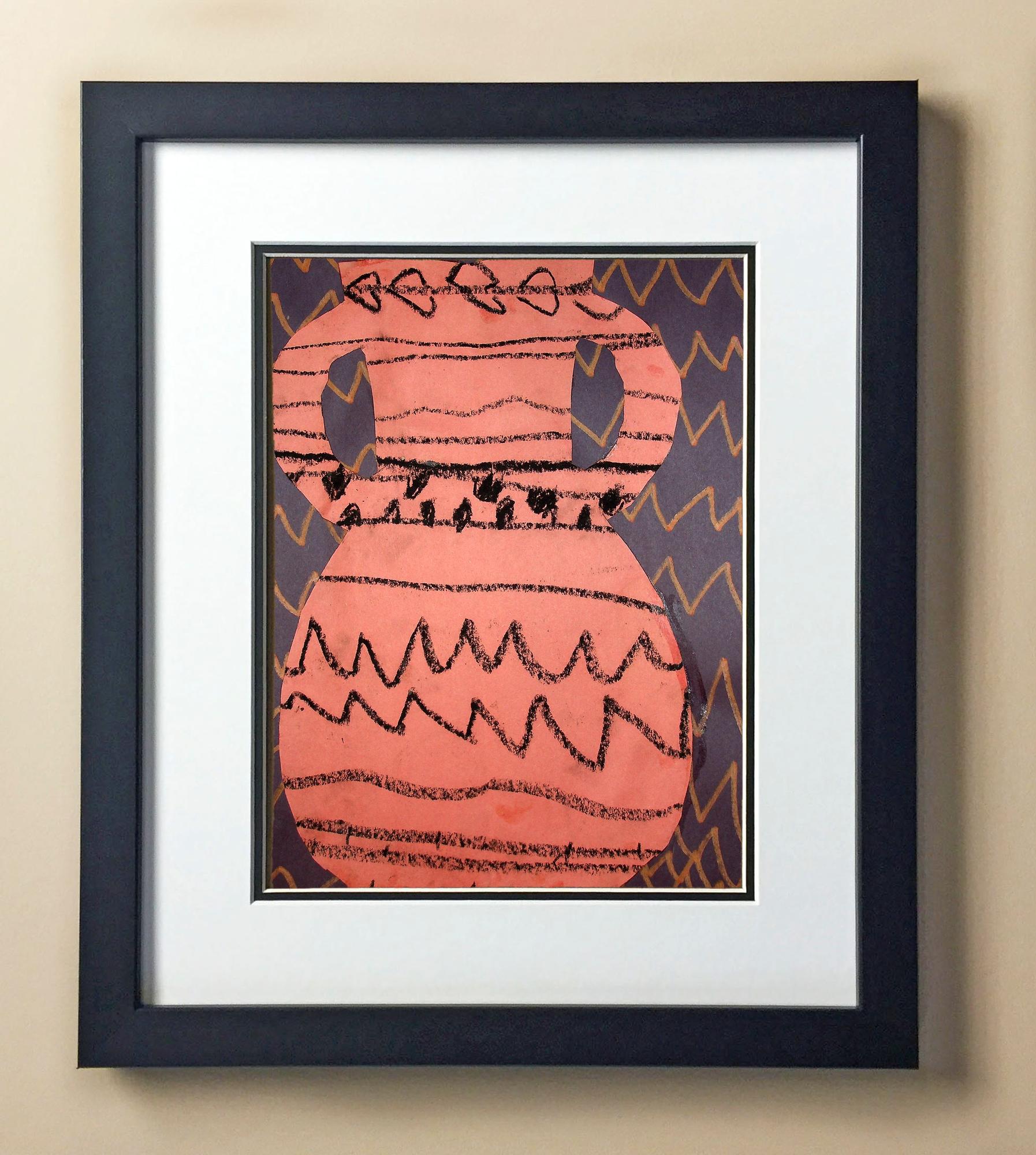 Included with the purchase is the Students Artwork, Frame, double matboard, shatter proof plexiglass, and a ready to hang backerboard with turnbuttons