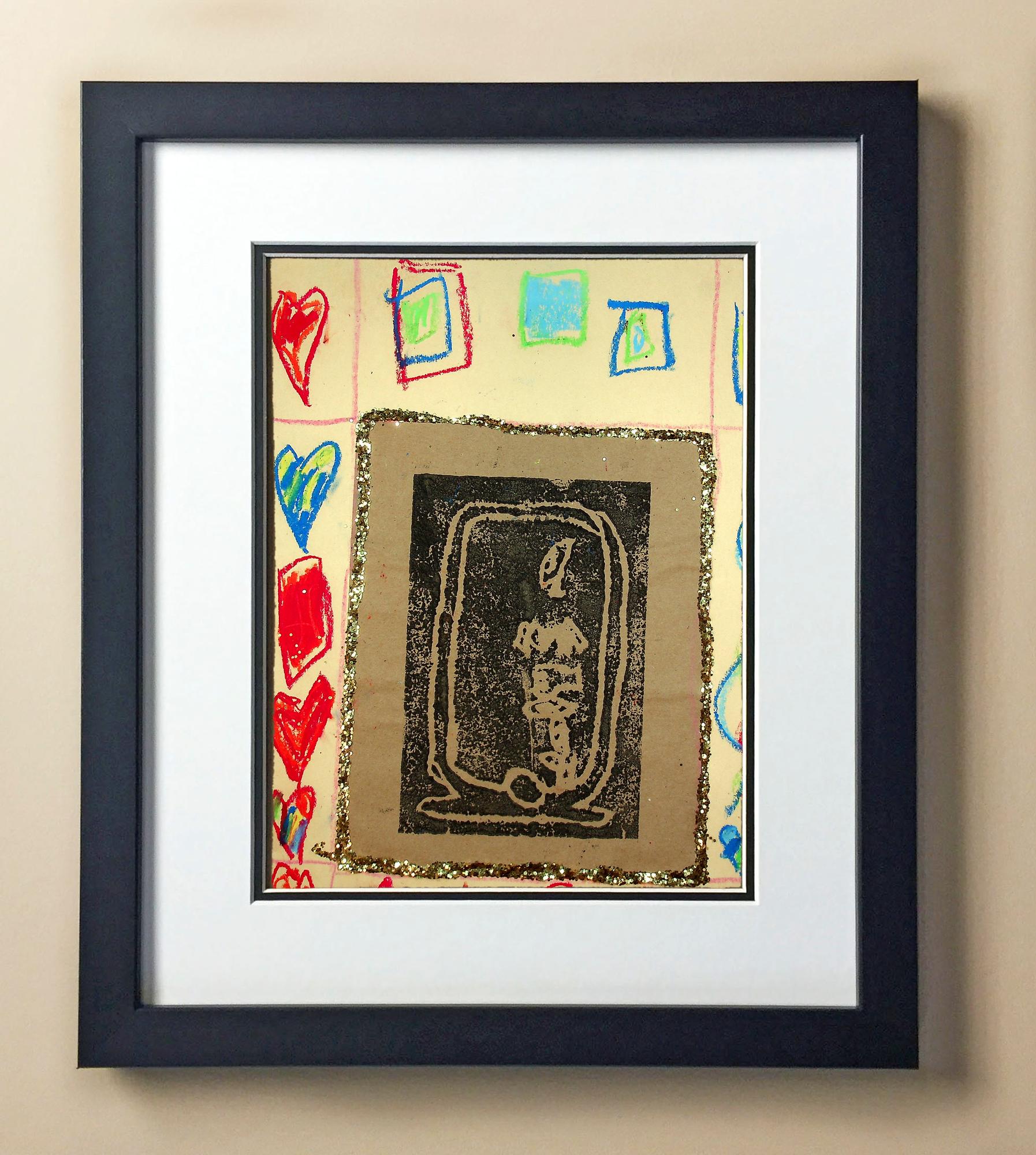 Included with the purchase is the Students Artwork, Frame, double matboard, shatter proof plexiglass, and a ready to hang backerboard with turnbuttons