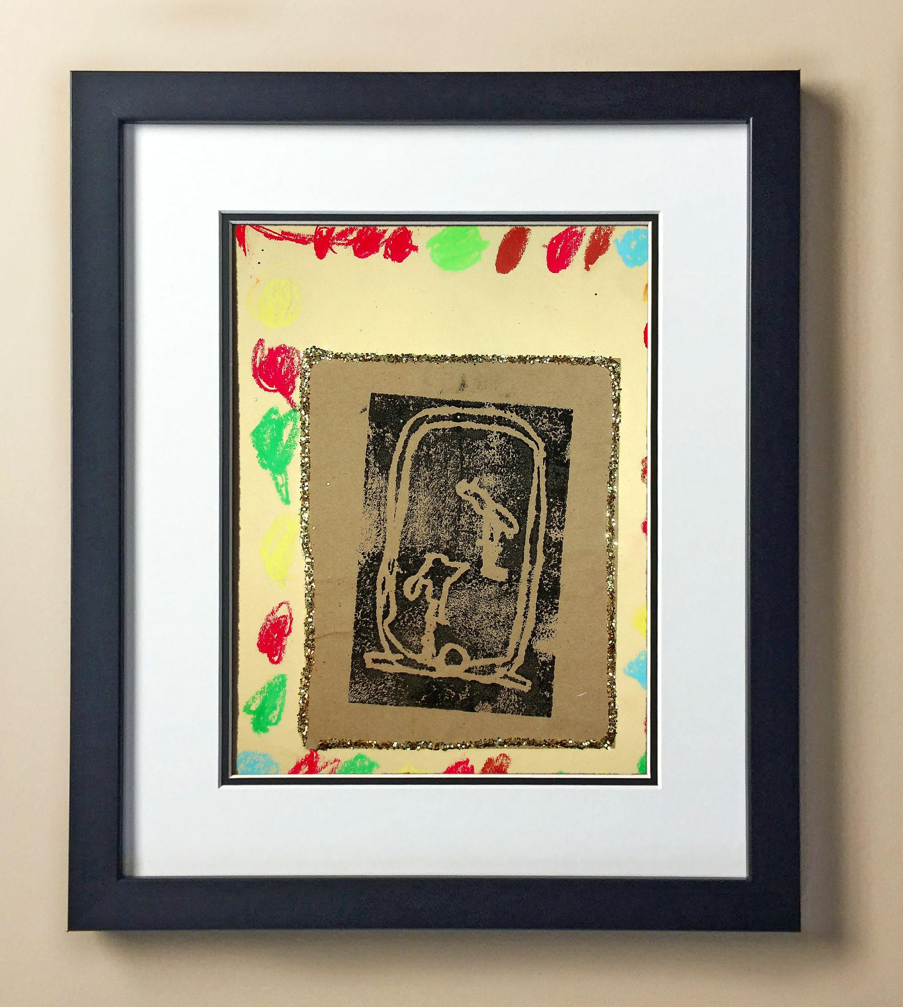 Included with the purchase is the Students Artwork, Frame, double matboard, shatter proof plexiglass, and a ready to hang backerboard with turnbuttons