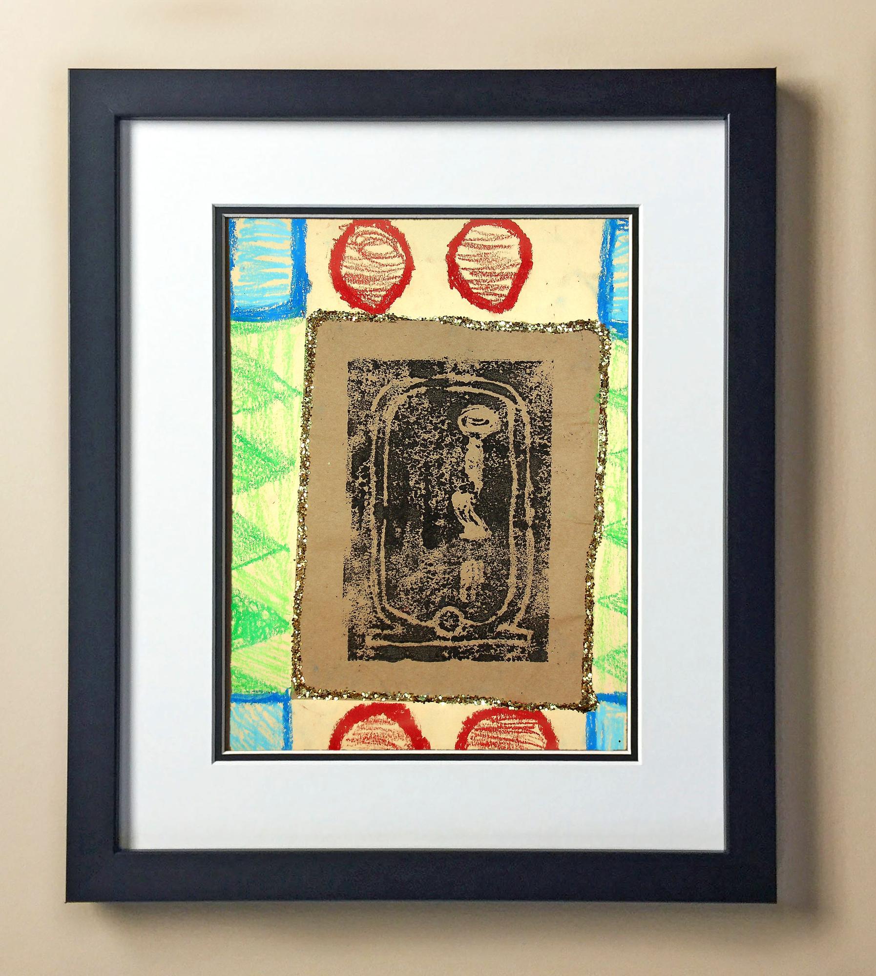 Included with the purchase is the Students Artwork, Frame, double matboard, shatter proof plexiglass, and a ready to hang backerboard with turnbuttons