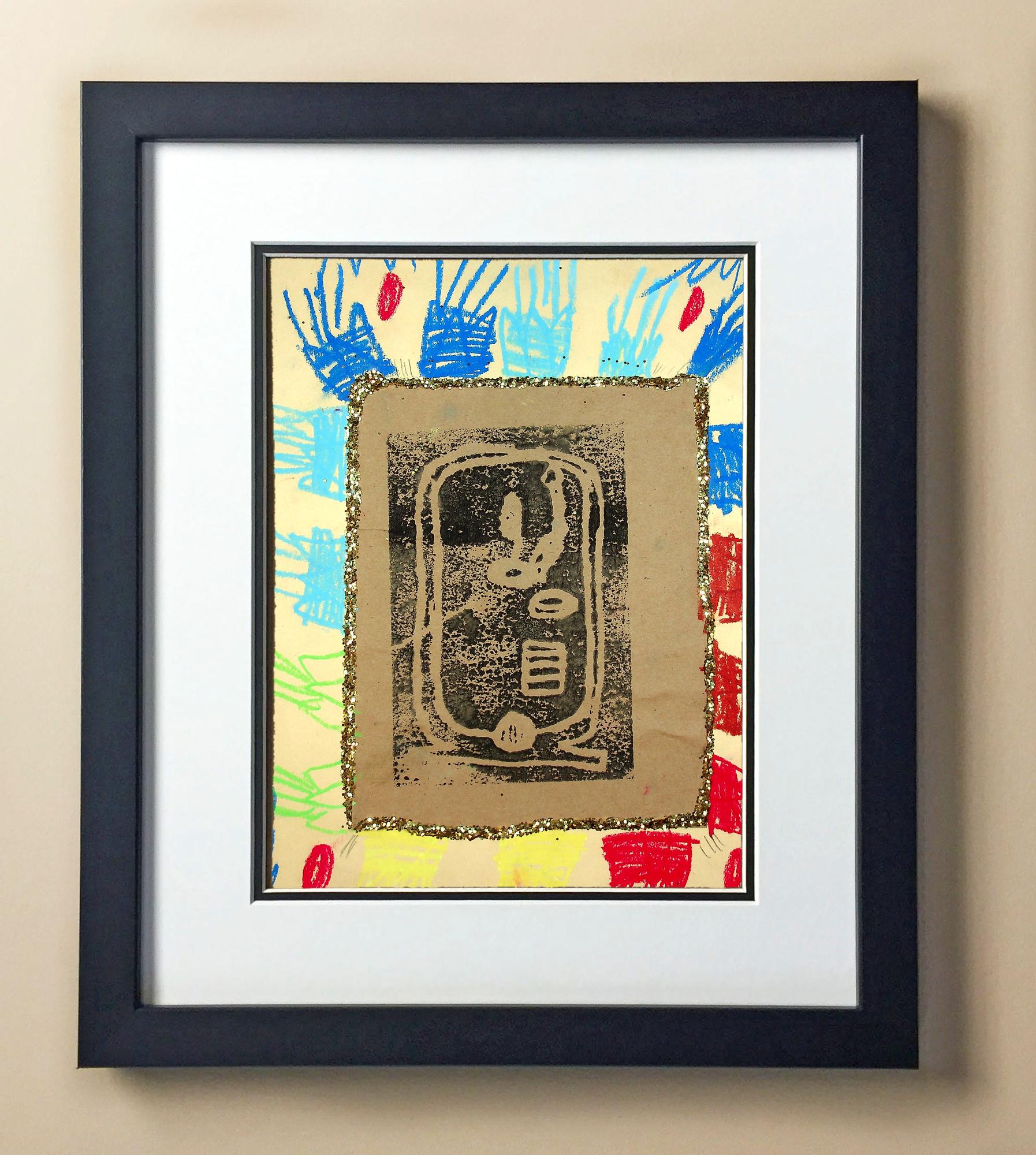 Included with the purchase is the Students Artwork, Frame, double matboard, shatter proof plexiglass, and a ready to hang backerboard with turnbuttons