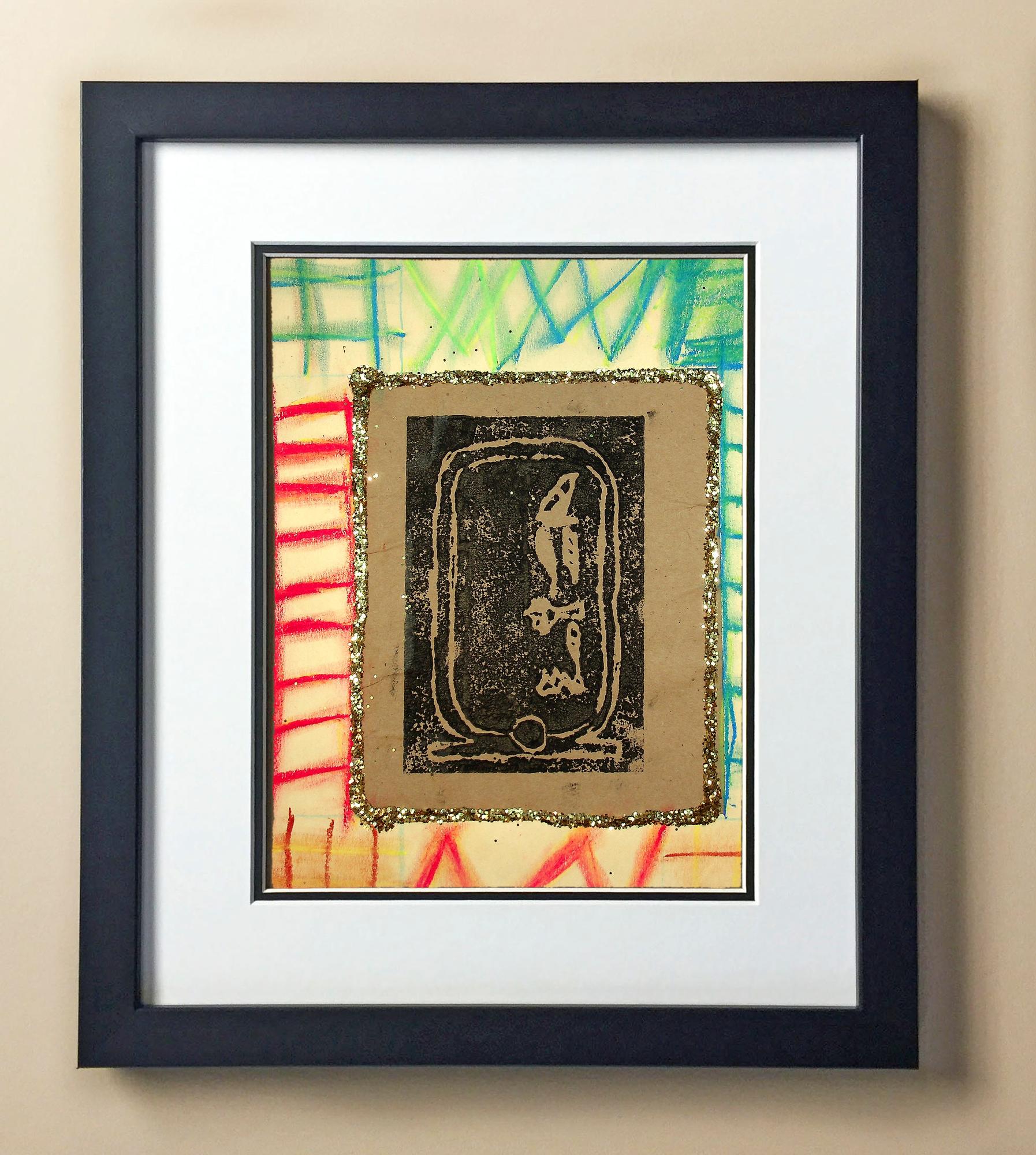 Included with the purchase is the Students Artwork, Frame, double matboard, shatter proof plexiglass, and a ready to hang backerboard with turnbuttons