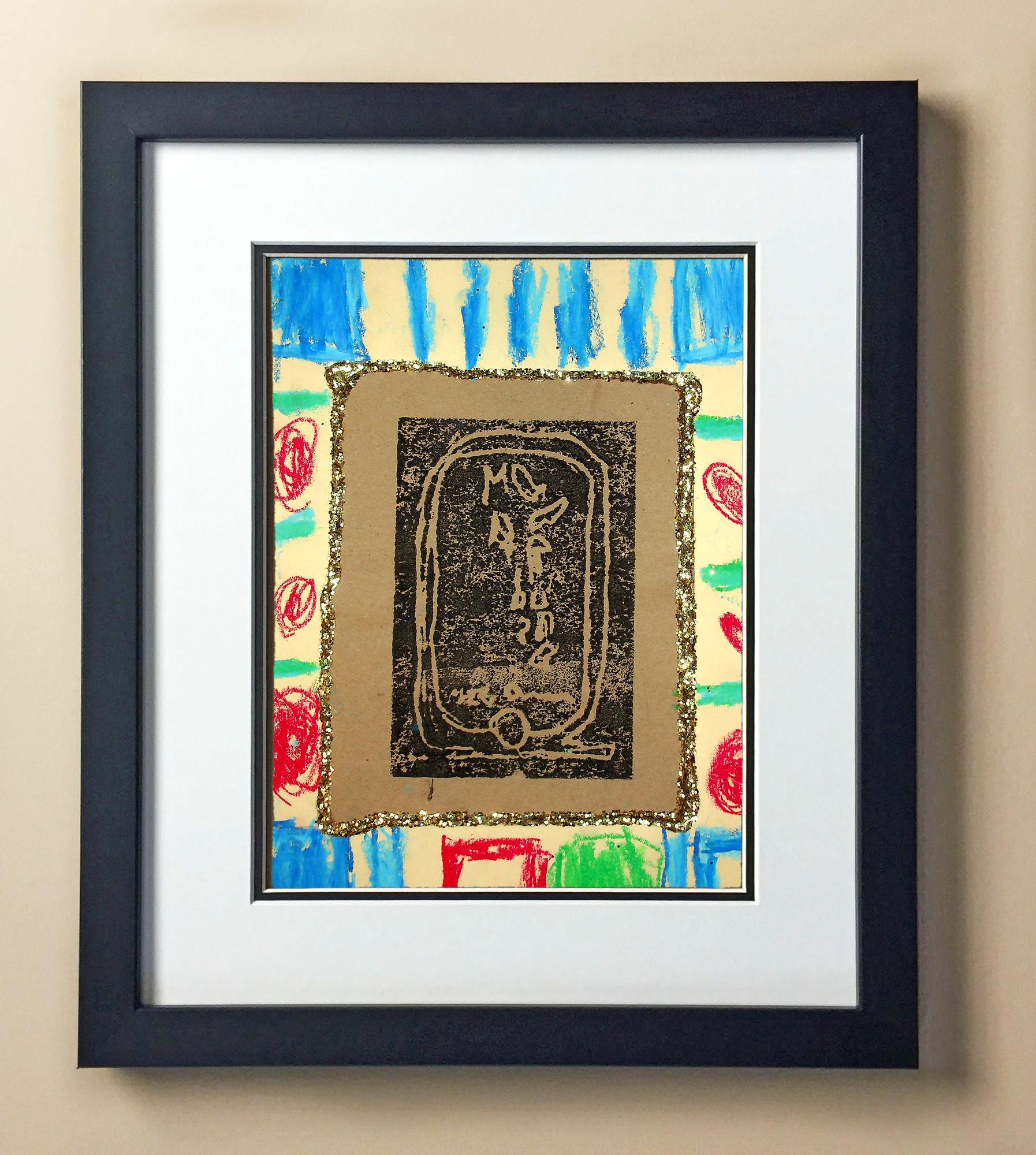 Included with the purchase is the Students Artwork, Frame, double matboard, shatter proof plexiglass, and a ready to hang backerboard with turnbuttons