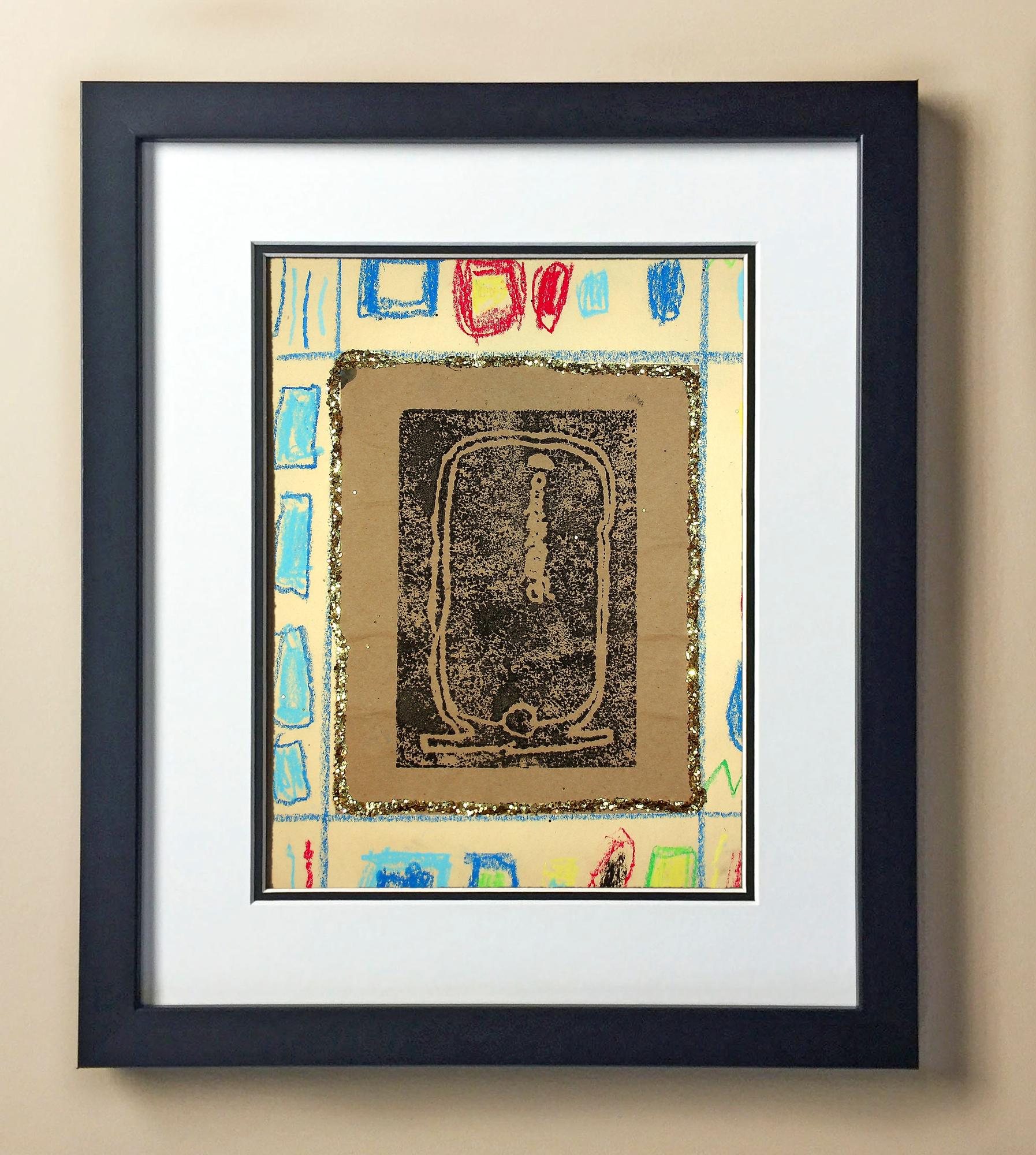 Included with the purchase is the Students Artwork, Frame, double matboard, shatter proof plexiglass, and a ready to hang backerboard with turnbuttons