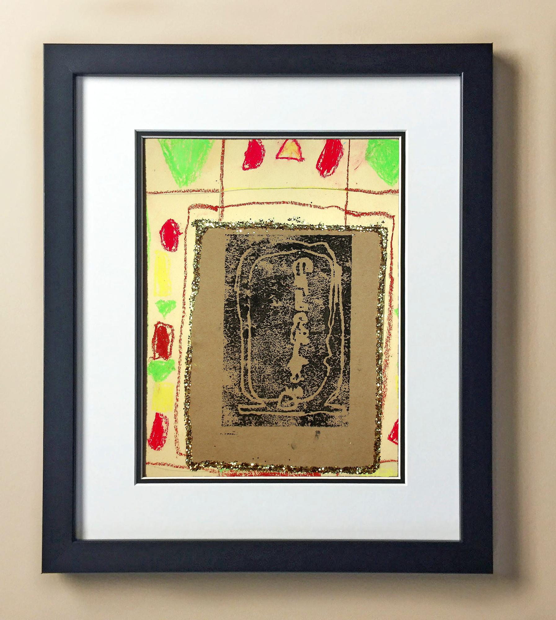 Included with the purchase is the Students Artwork, Frame, double matboard, shatter proof plexiglass, and a ready to hang backerboard with turnbuttons