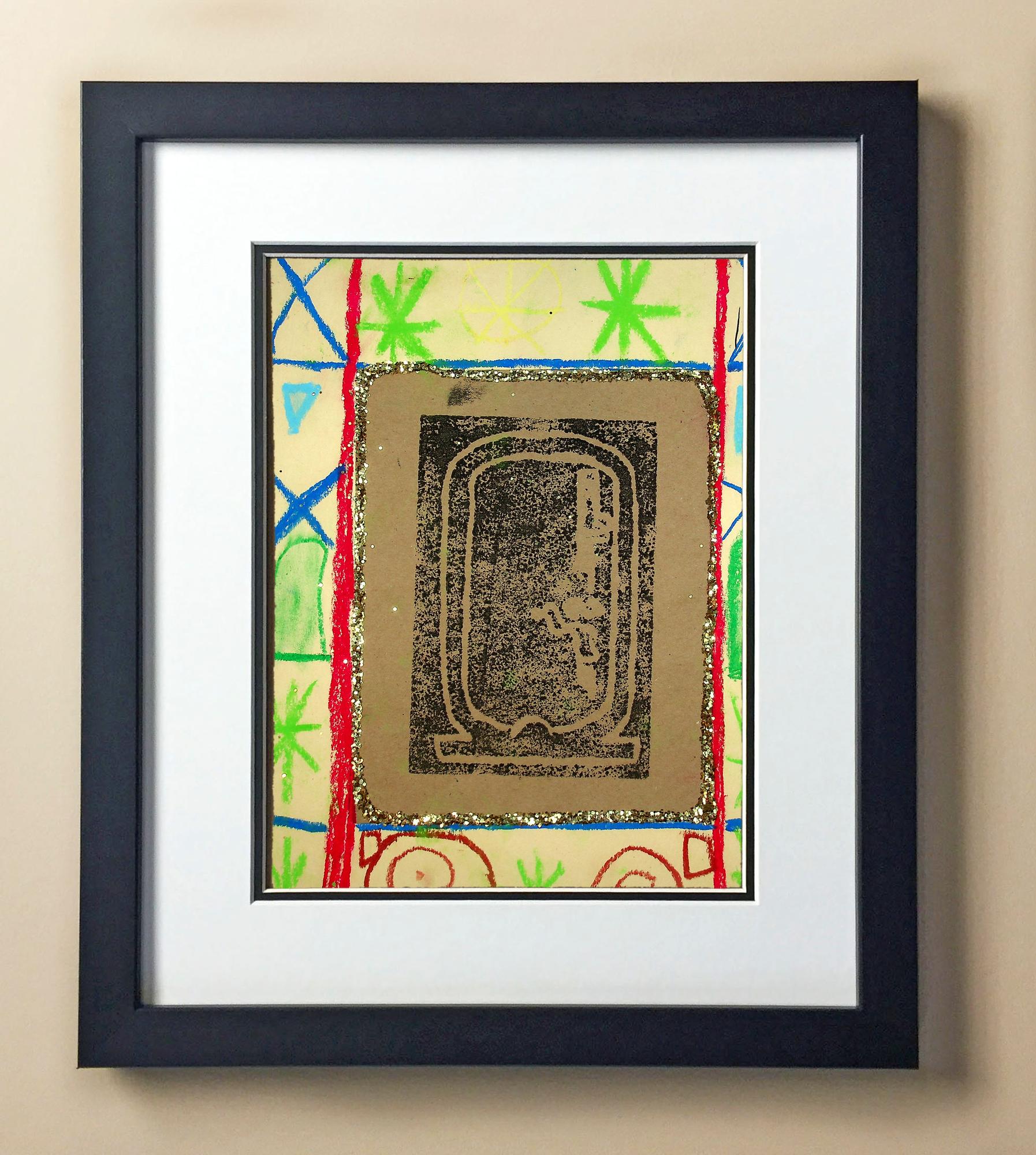 Included with the purchase is the Students Artwork, Frame, double matboard, shatter proof plexiglass, and a ready to hang backerboard with turnbuttons
