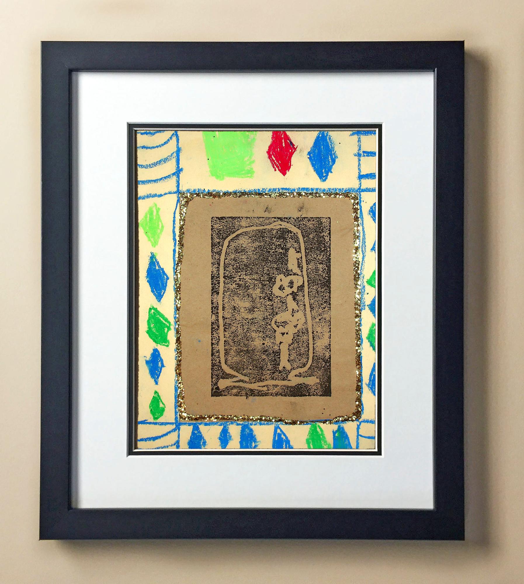 Included with the purchase is the Students Artwork, Frame, double matboard, shatter proof plexiglass, and a ready to hang backerboard with turnbuttons