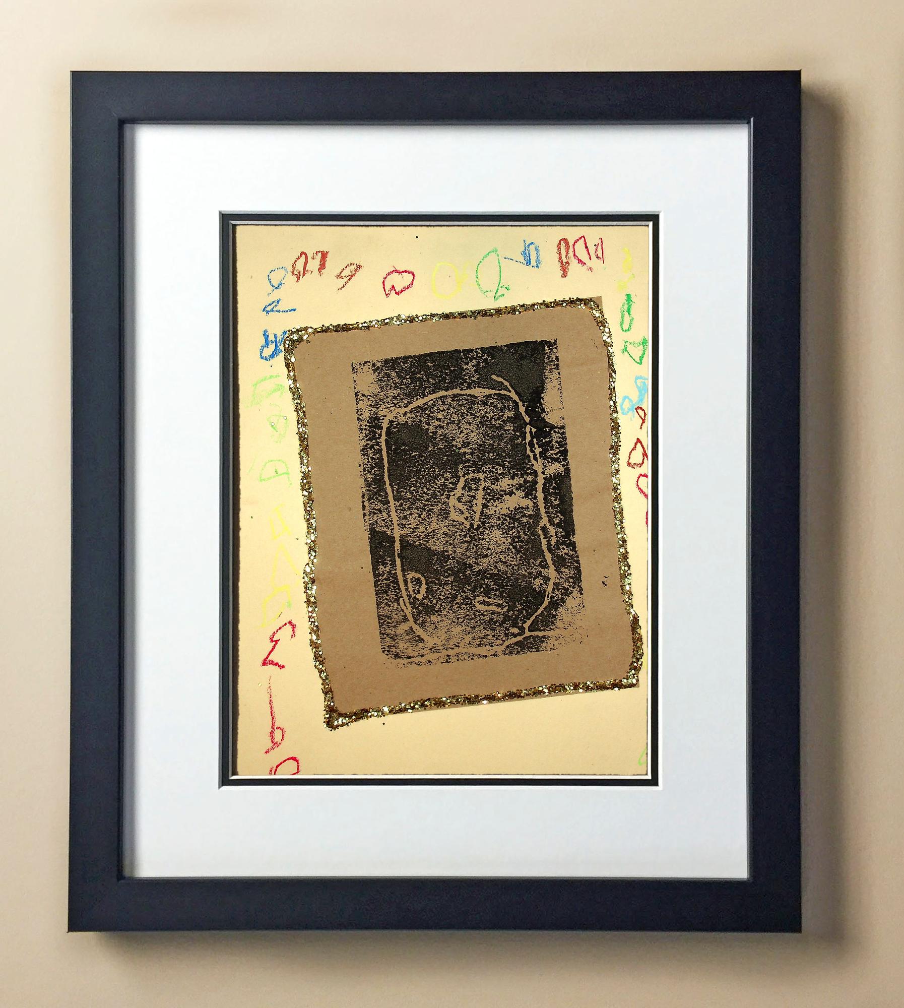 Included with the purchase is the Students Artwork, Frame, double matboard, shatter proof plexiglass, and a ready to hang backerboard with turnbuttons