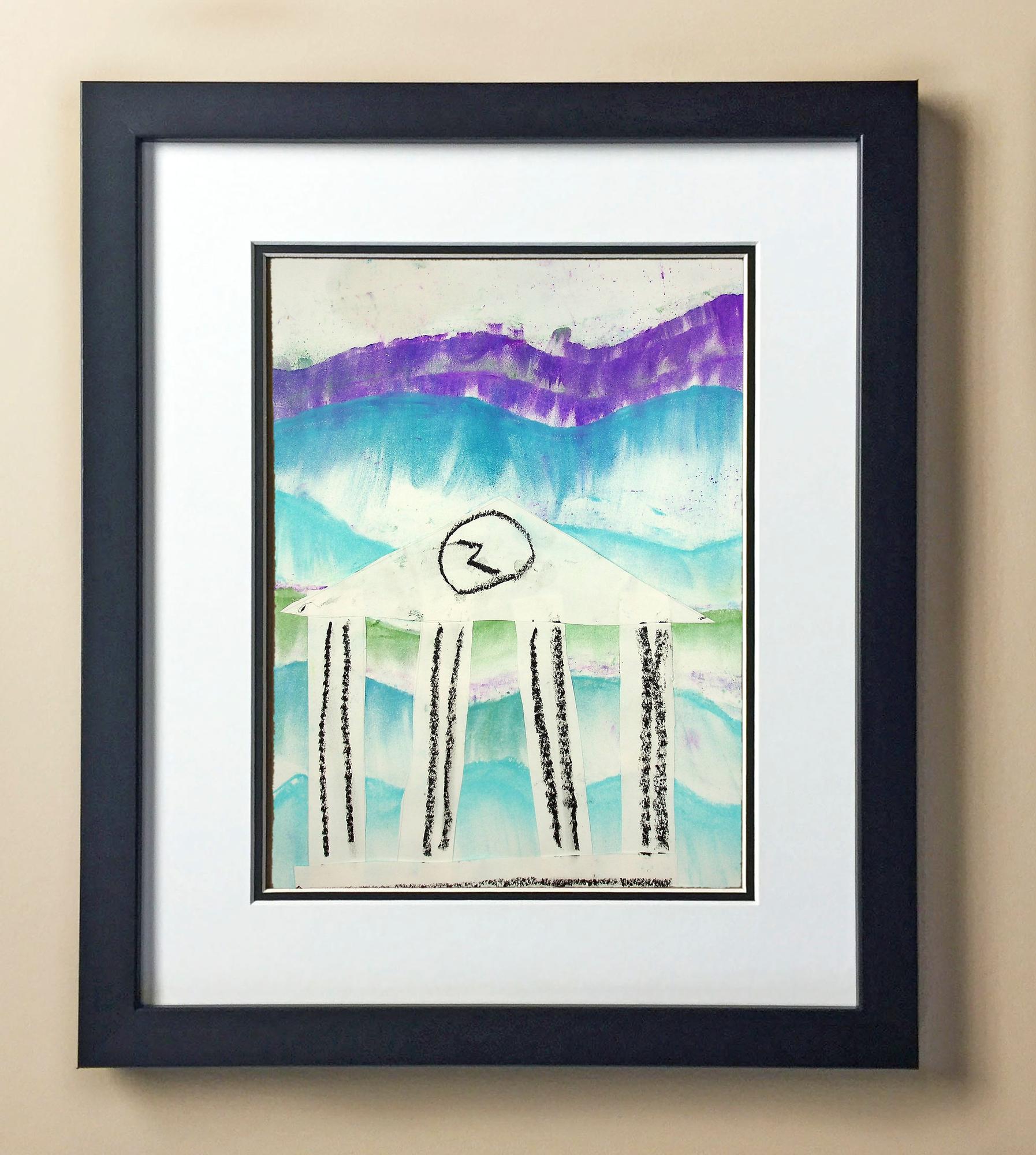 Included with the purchase is the Students Artwork, Frame, double matboard, shatter proof plexiglass, and a ready to hang backerboard with turnbuttons