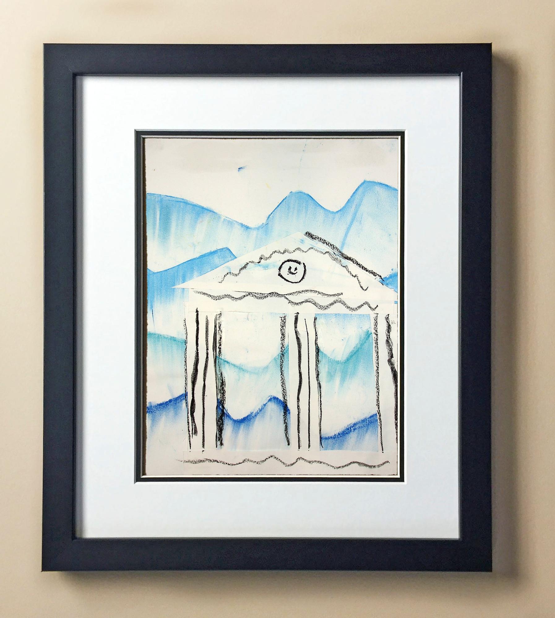 Included with the purchase is the Students Artwork, Frame, double matboard, shatter proof plexiglass, and a ready to hang backerboard with turnbuttons