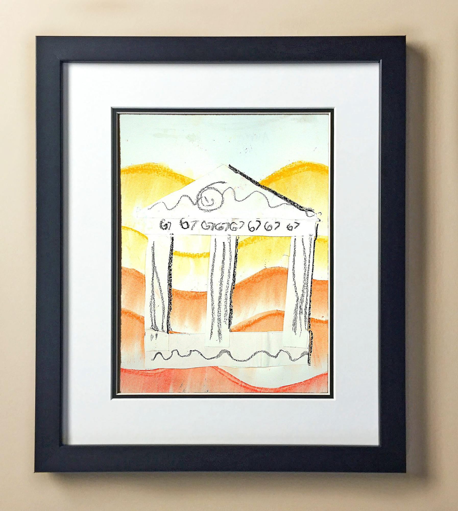 Included with the purchase is the Students Artwork, Frame, double matboard, shatter proof plexiglass, and a ready to hang backerboard with turnbuttons