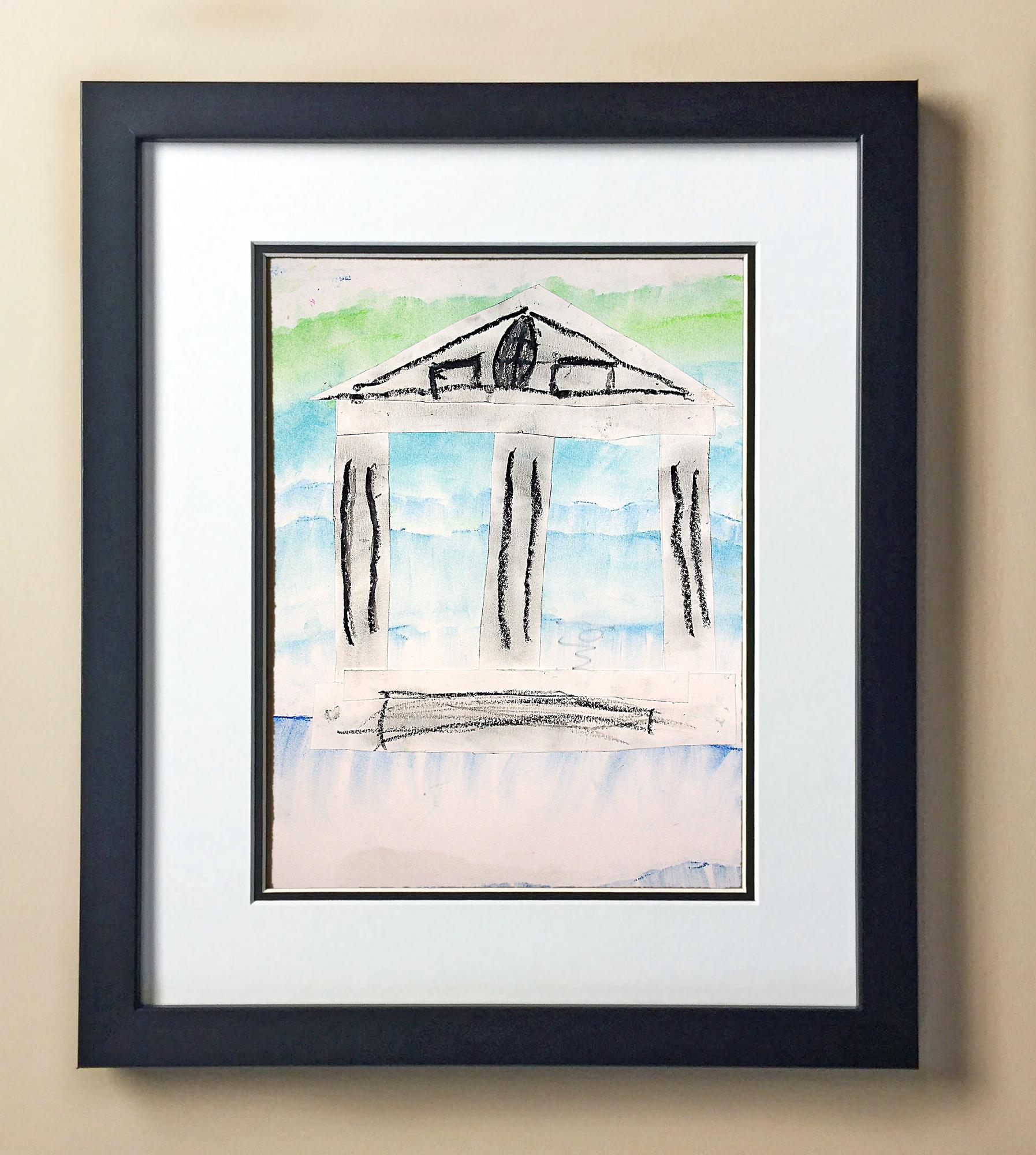 Included with the purchase is the Students Artwork, Frame, double matboard, shatter proof plexiglass, and a ready to hang backerboard with turnbuttons