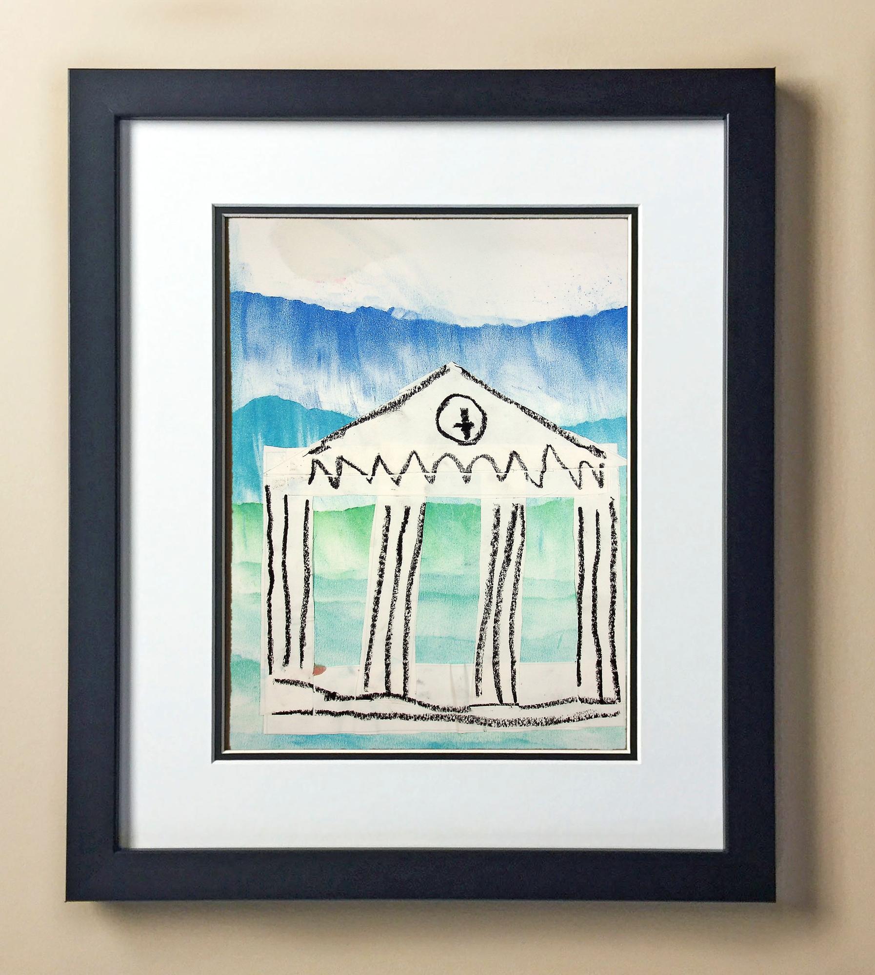 Included with the purchase is the Students Artwork, Frame, double matboard, shatter proof plexiglass, and a ready to hang backerboard with turnbuttons