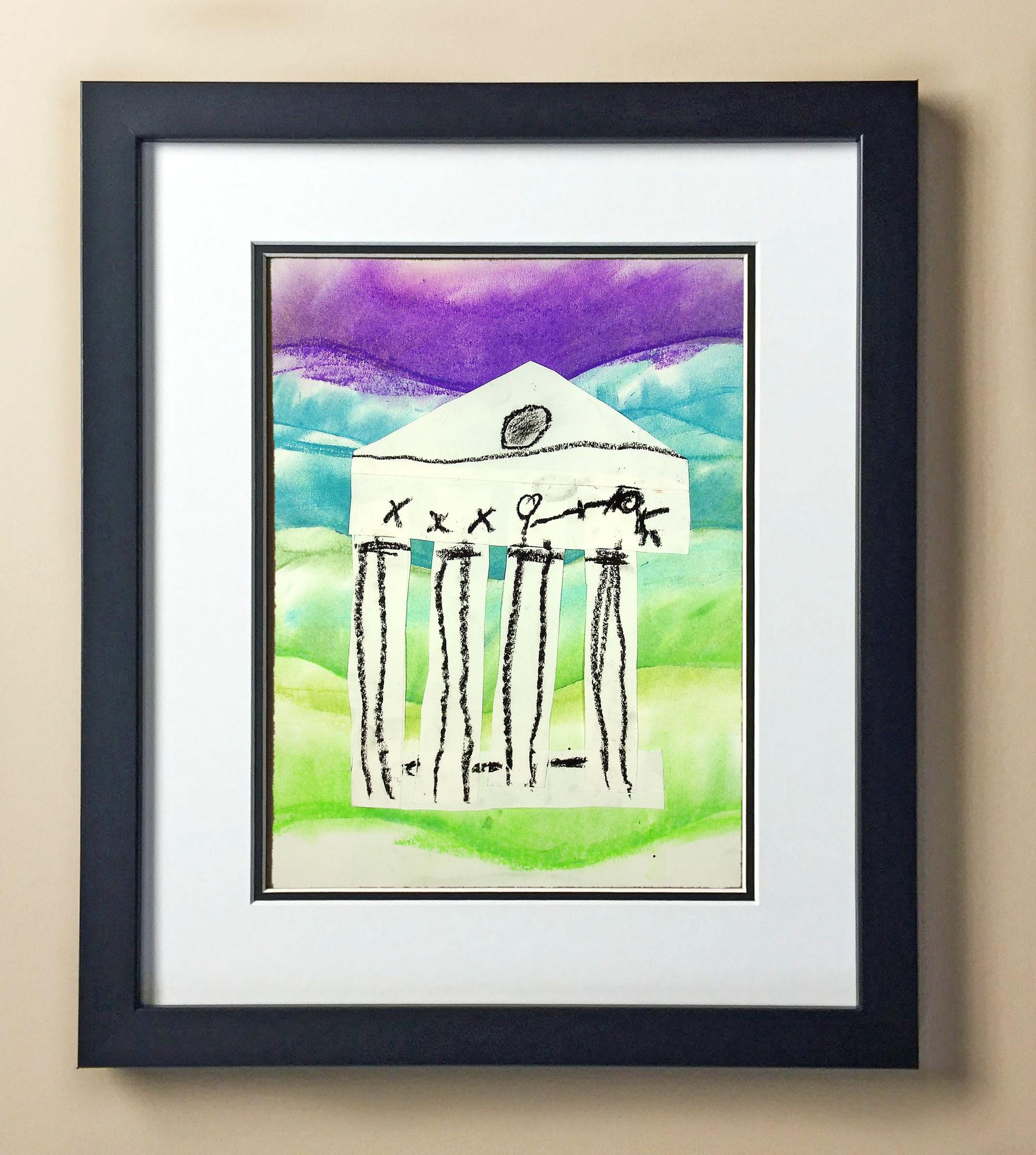 Included with the purchase is the Students Artwork, Frame, double matboard, shatter proof plexiglass, and a ready to hang backerboard with turnbuttons