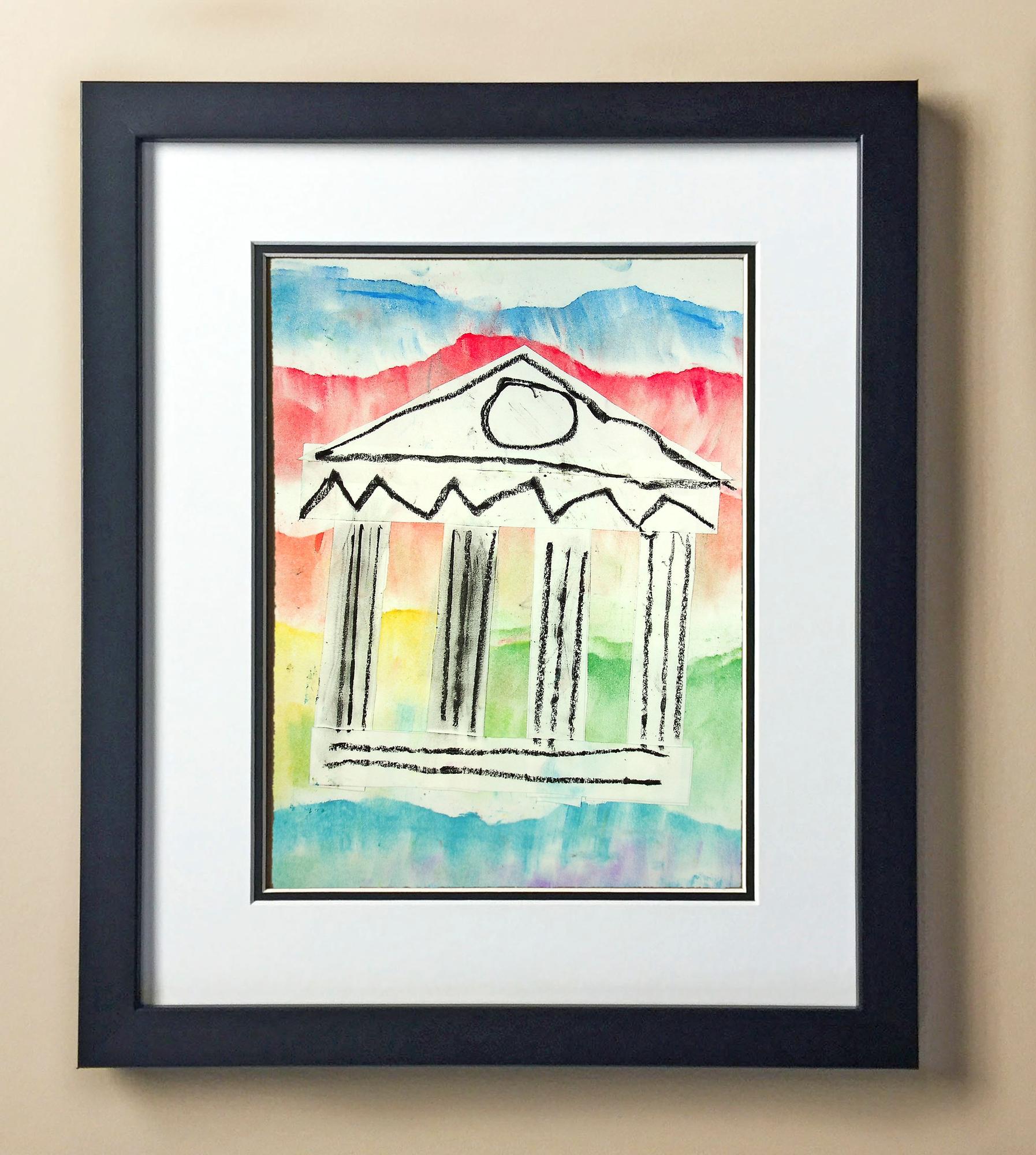 Included with the purchase is the Students Artwork, Frame, double matboard, shatter proof plexiglass, and a ready to hang backerboard with turnbuttons
