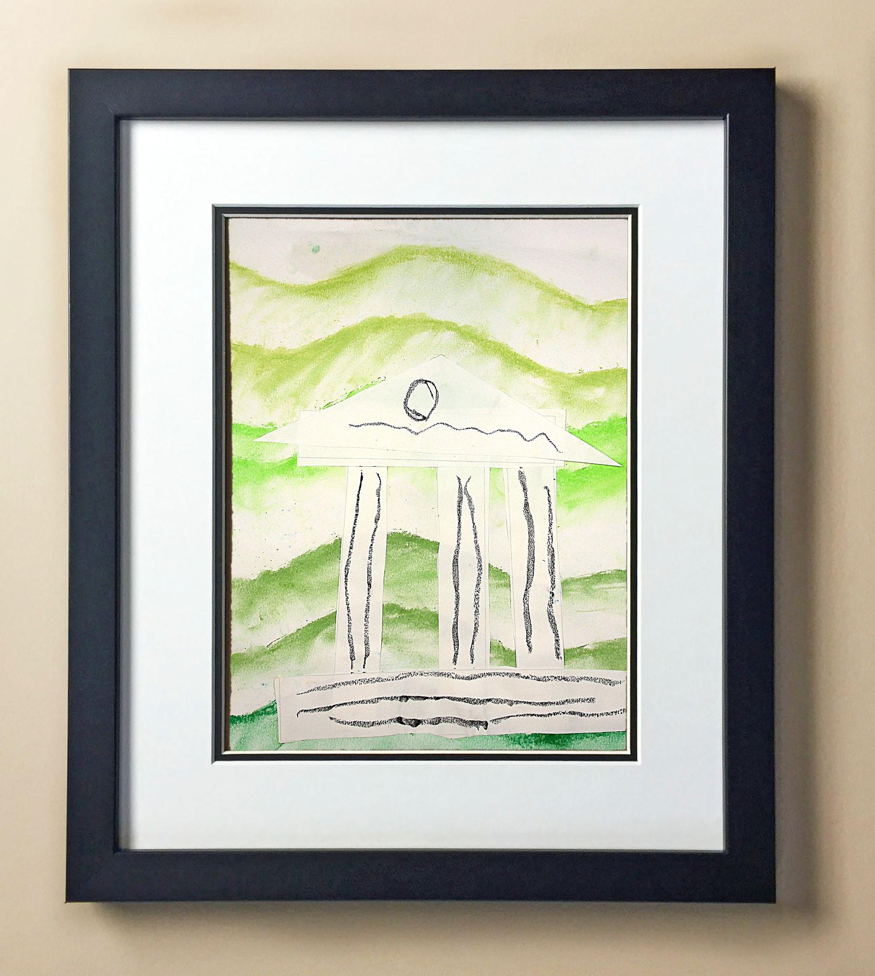 Included with the purchase is the Students Artwork, Frame, double matboard, shatter proof plexiglass, and a ready to hang backerboard with turnbuttons
