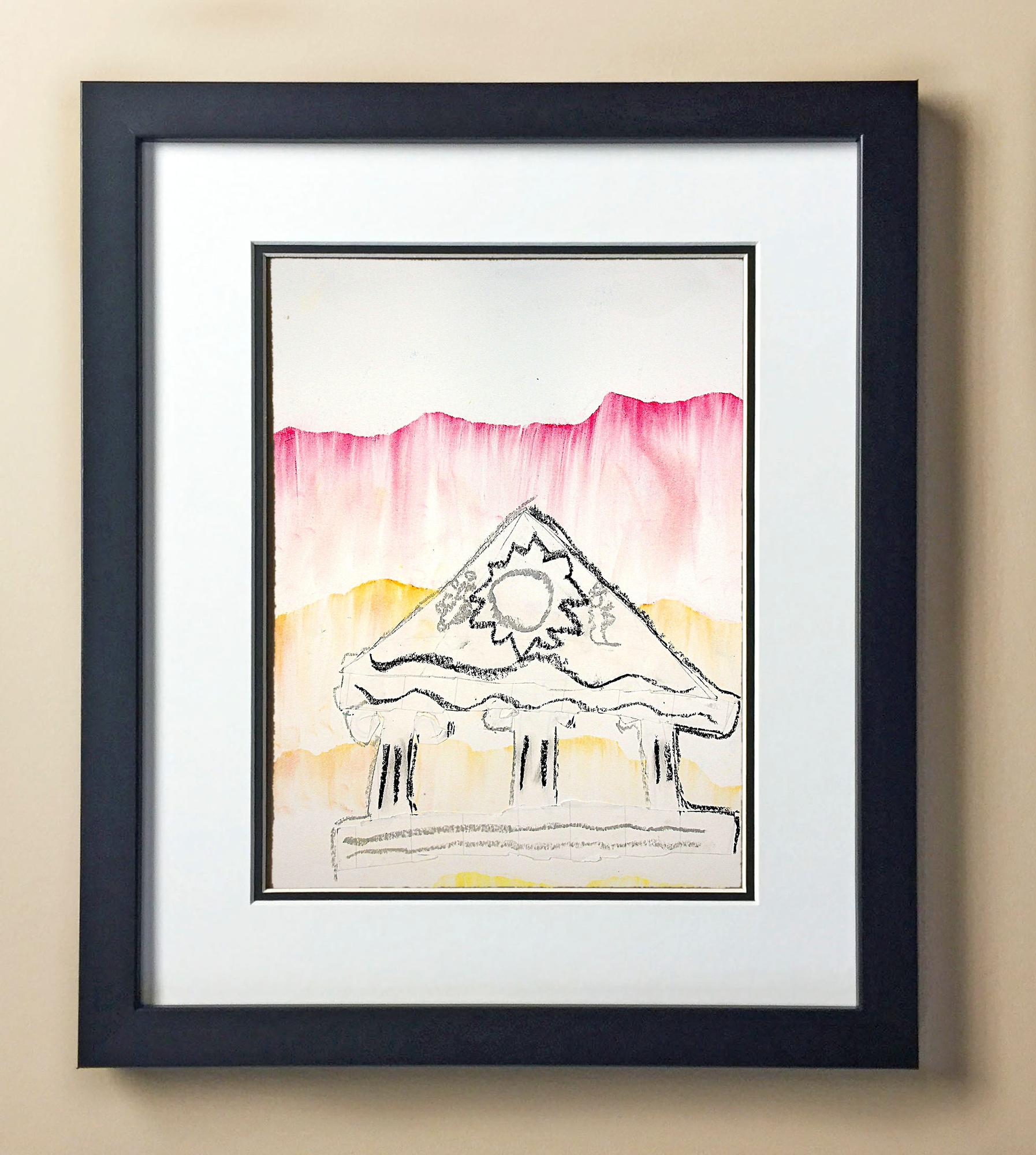 Included with the purchase is the Students Artwork, Frame, double matboard, shatter proof plexiglass, and a ready to hang backerboard with turnbuttons
