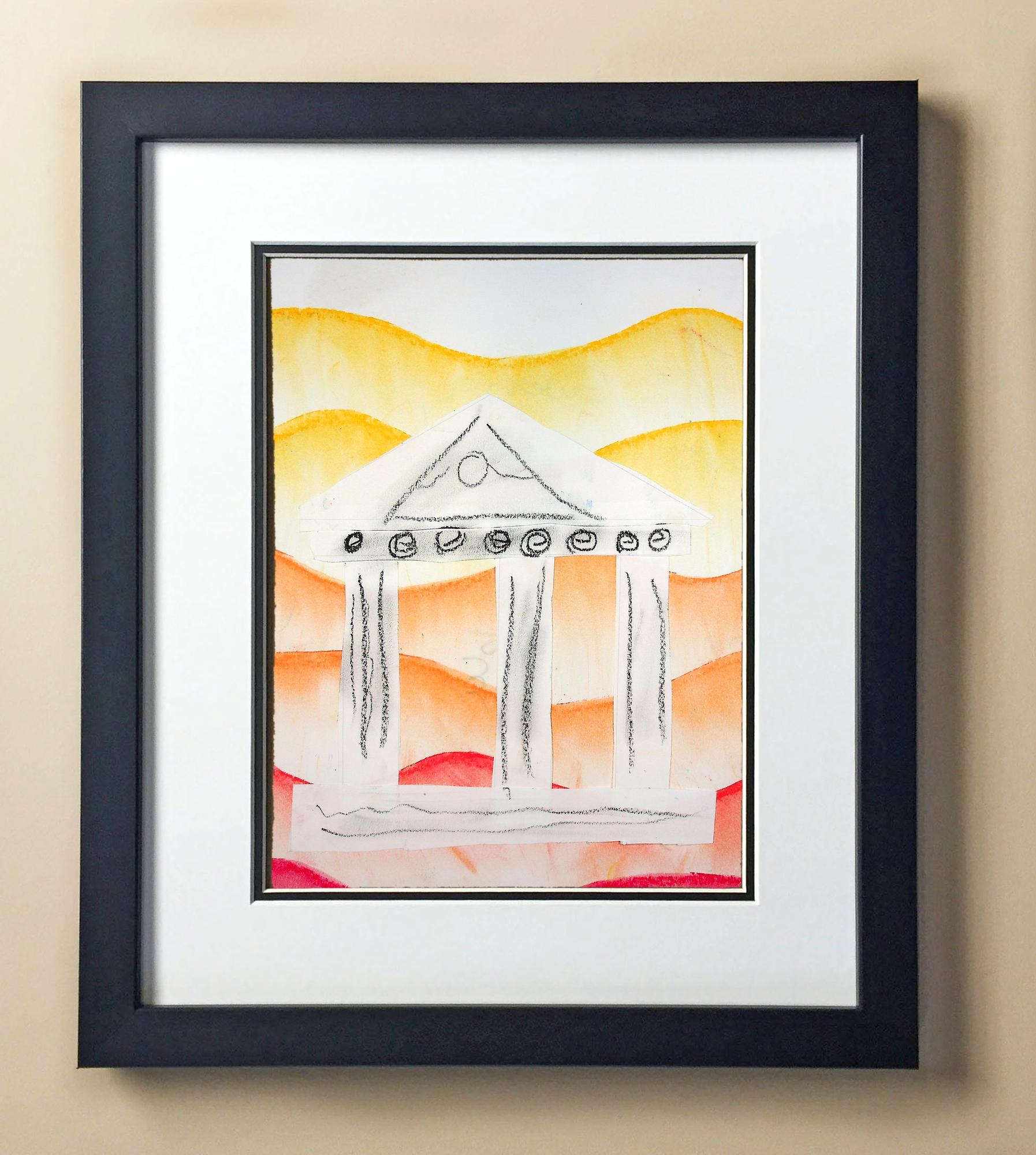 Included with the purchase is the Students Artwork, Frame, double matboard, shatter proof plexiglass, and a ready to hang backerboard with turnbuttons