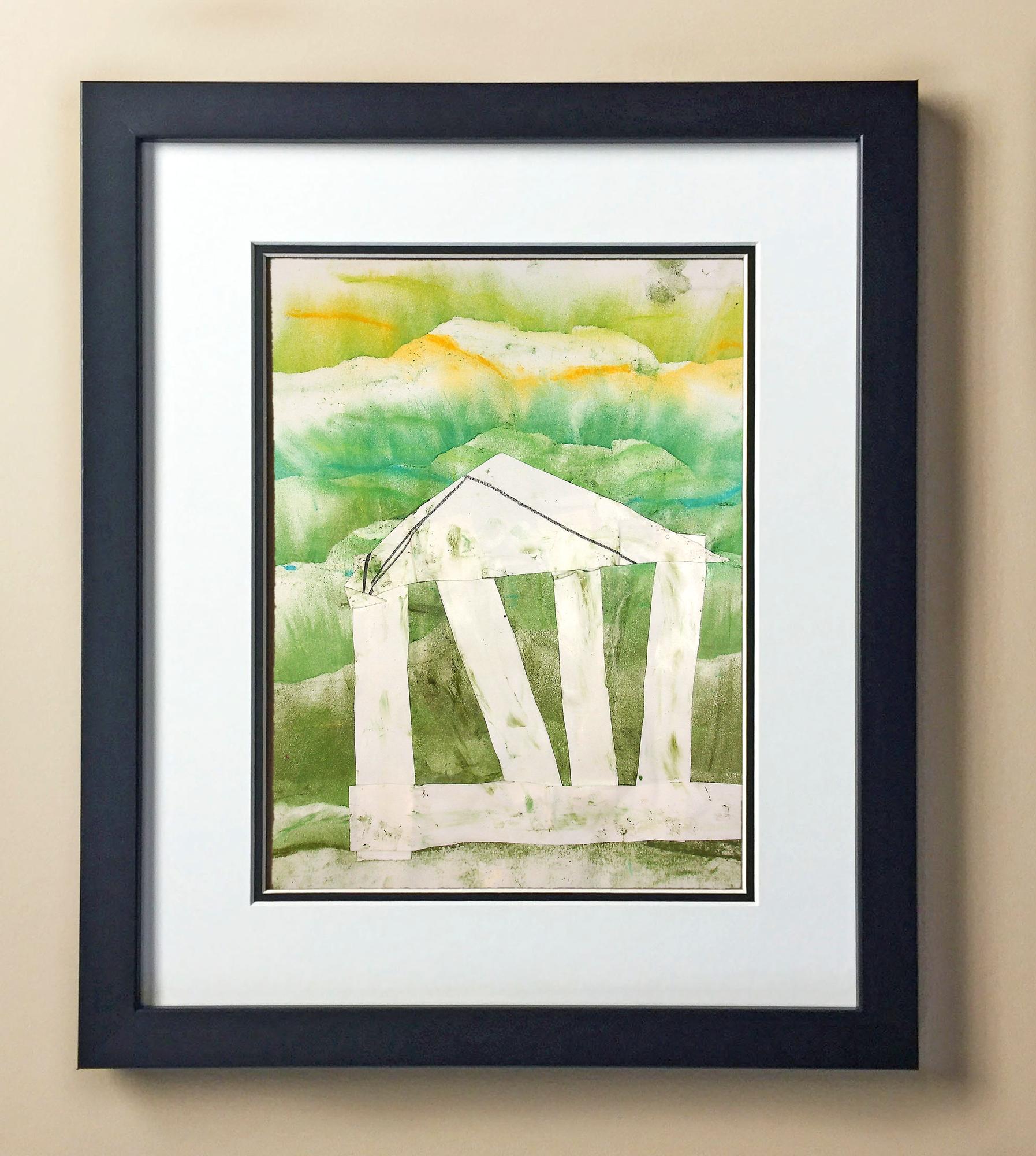 Included with the purchase is the Students Artwork, Frame, double matboard, shatter proof plexiglass, and a ready to hang backerboard with turnbuttons