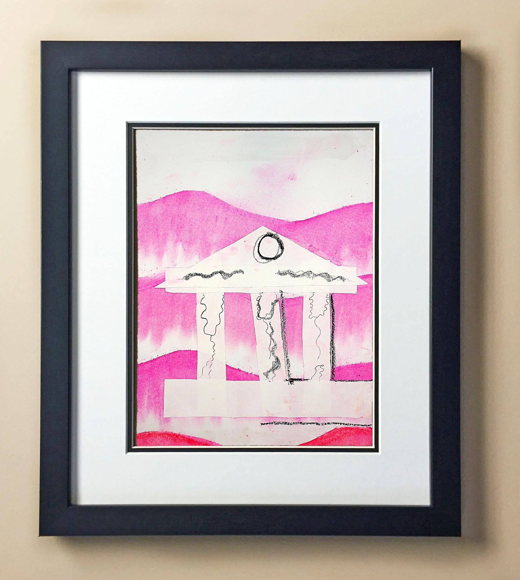 Included with the purchase is the Students Artwork, Frame, double matboard, shatter proof plexiglass, and a ready to hang backerboard with turnbuttons