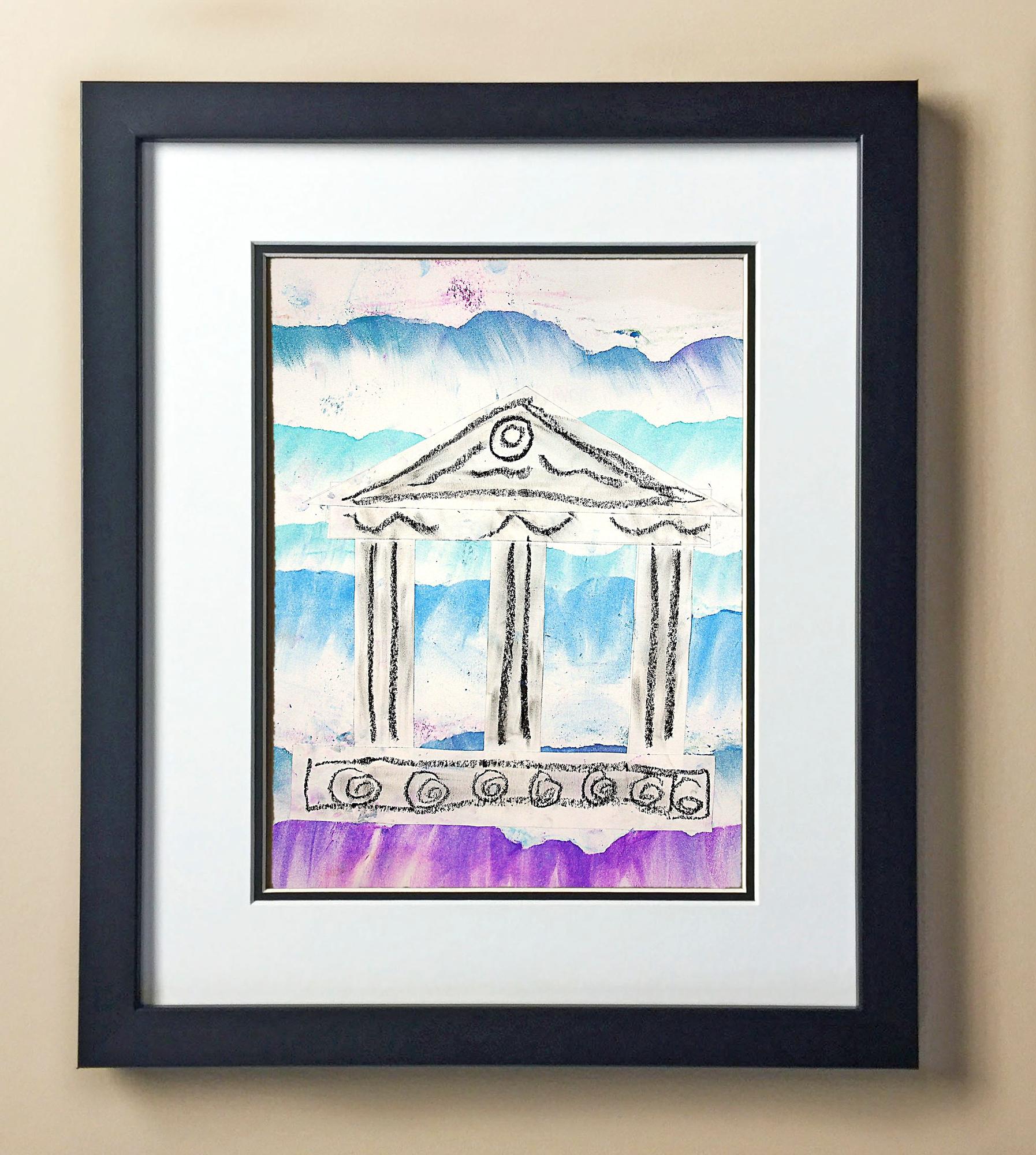 Included with the purchase is the Students Artwork, Frame, double matboard, shatter proof plexiglass, and a ready to hang backerboard with turnbuttons
