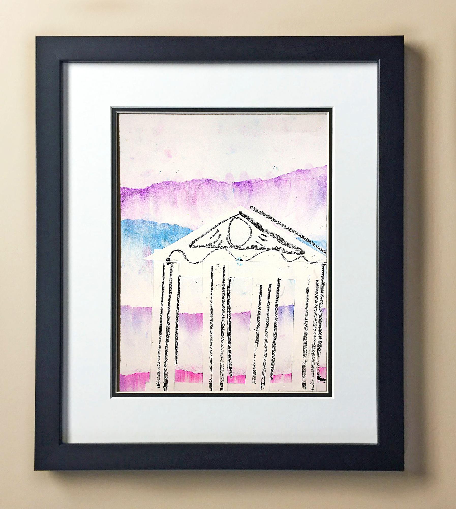 Included with the purchase is the Students Artwork, Frame, double matboard, shatter proof plexiglass, and a ready to hang backerboard with turnbuttons