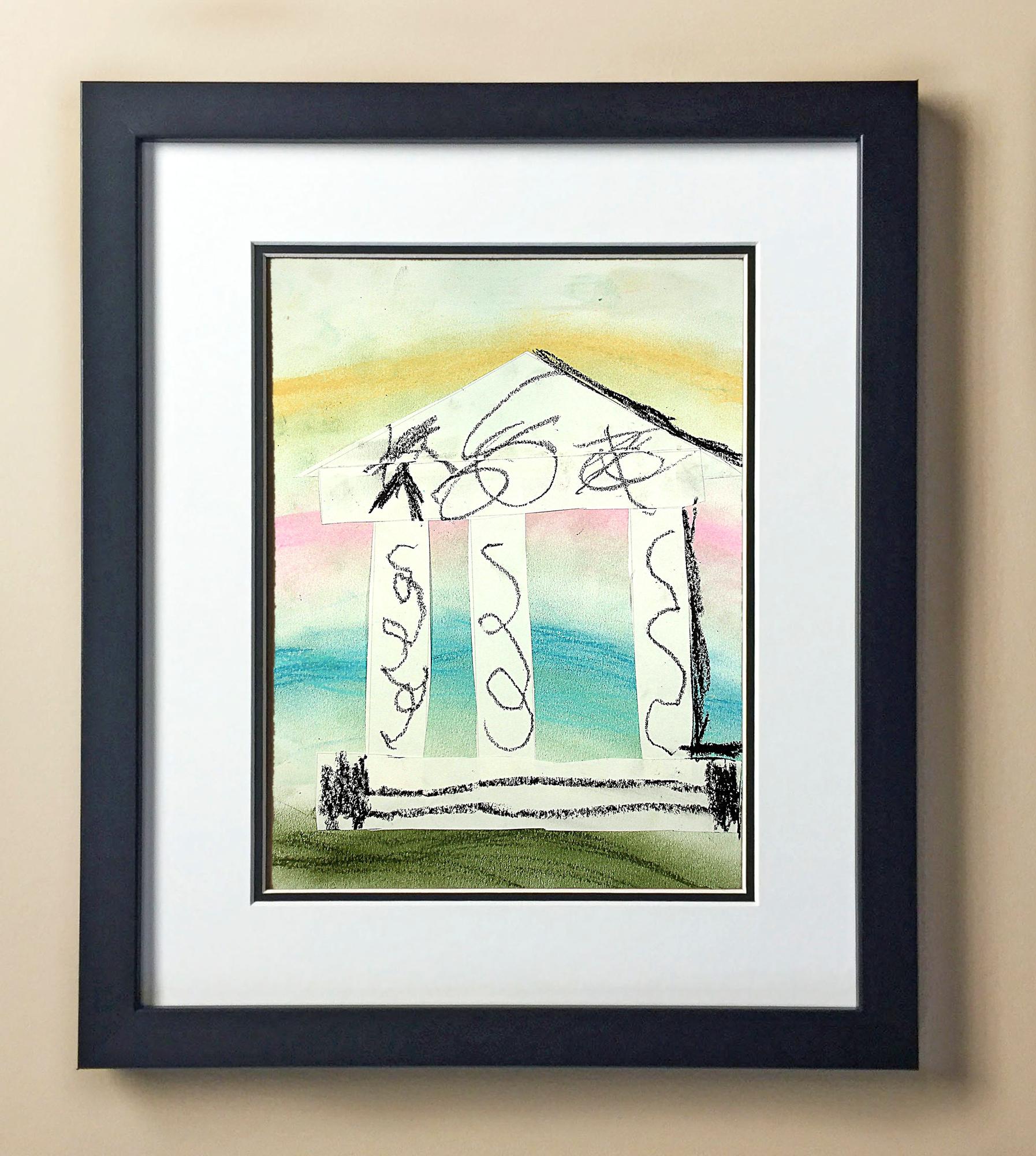 Included with the purchase is the Students Artwork, Frame, double matboard, shatter proof plexiglass, and a ready to hang backerboard with turnbuttons
