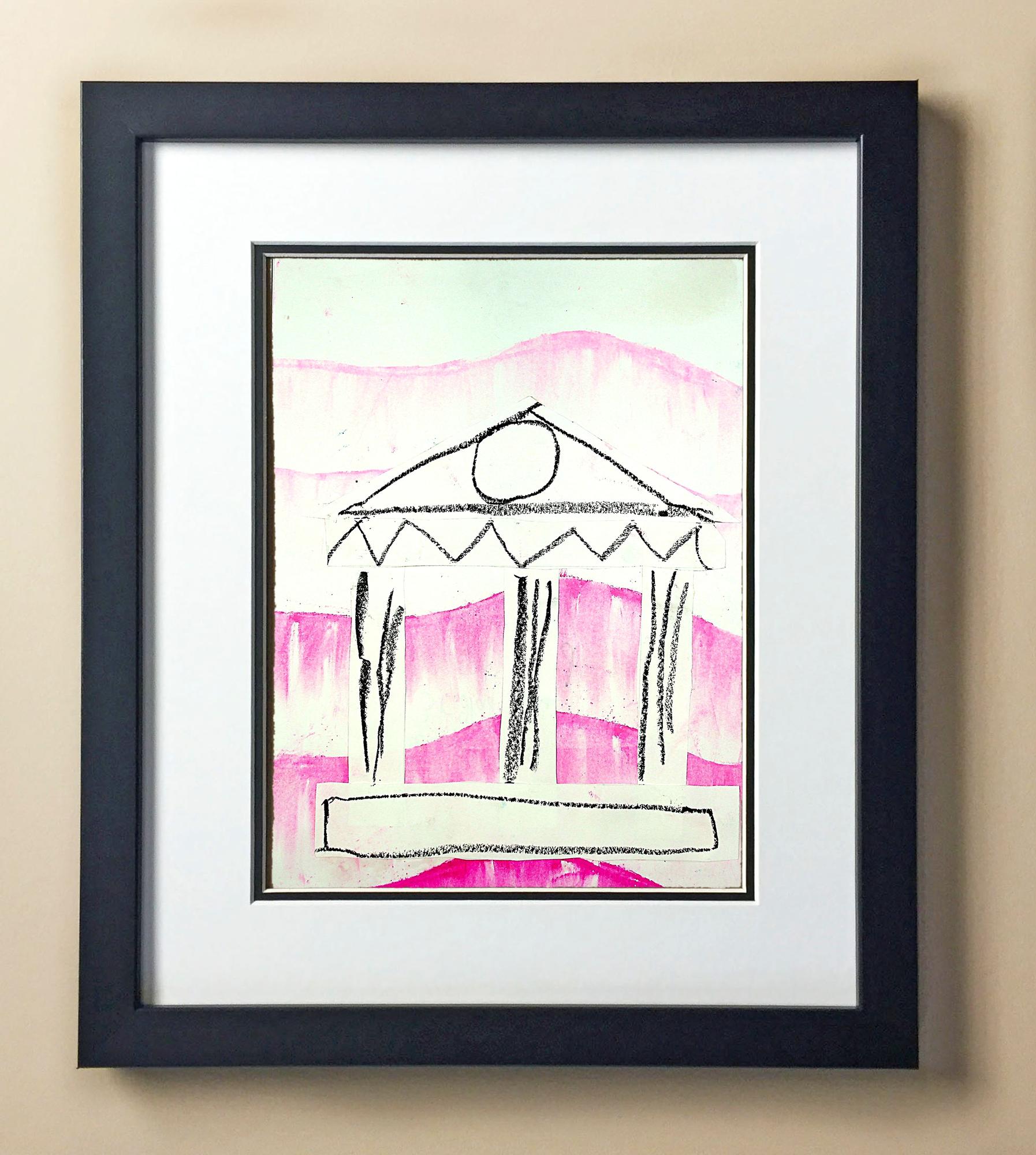 Included with the purchase is the Students Artwork, Frame, double matboard, shatter proof plexiglass, and a ready to hang backerboard with turnbuttons