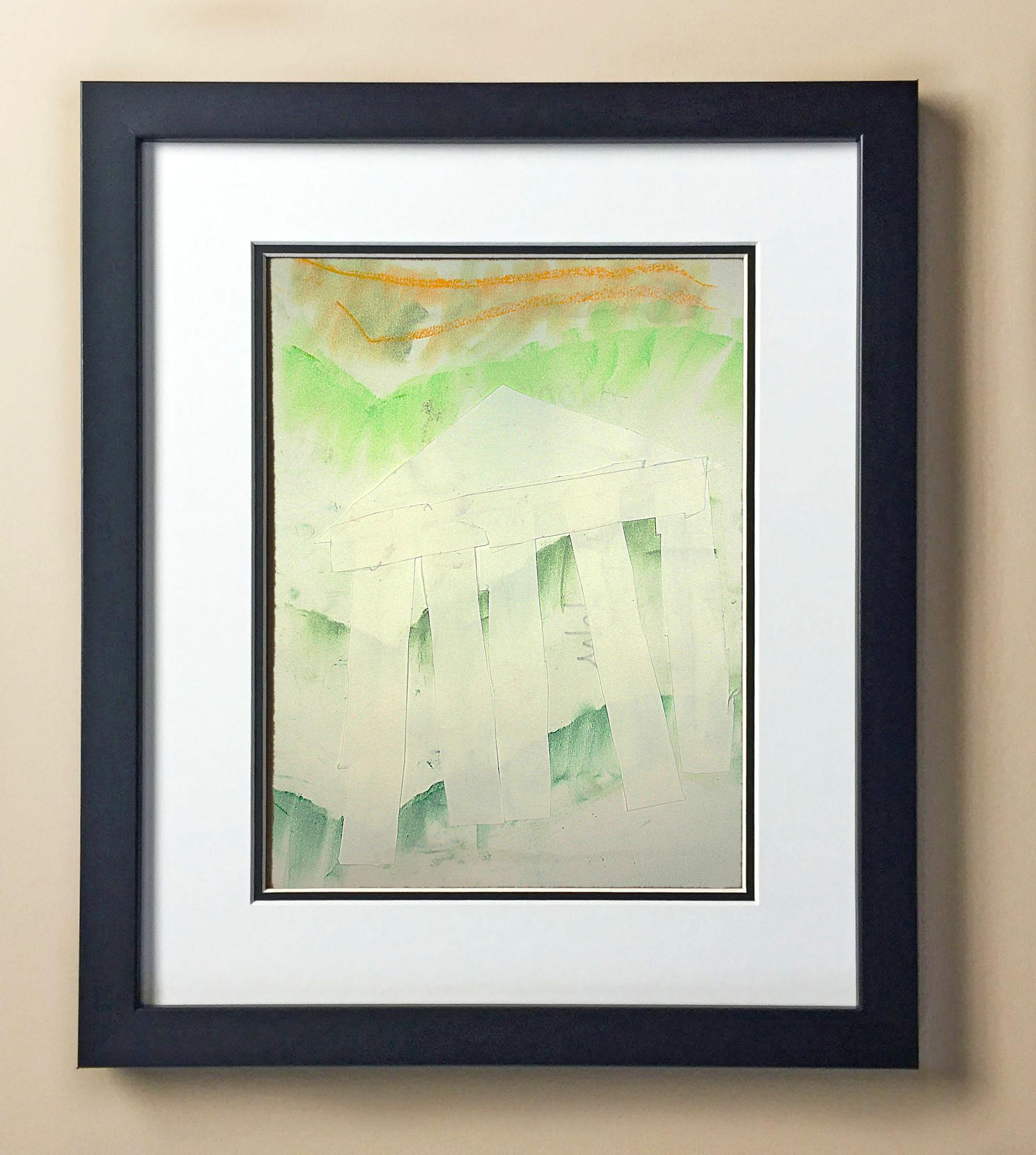 Included with the purchase is the Students Artwork, Frame, double matboard, shatter proof plexiglass, and a ready to hang backerboard with turnbuttons