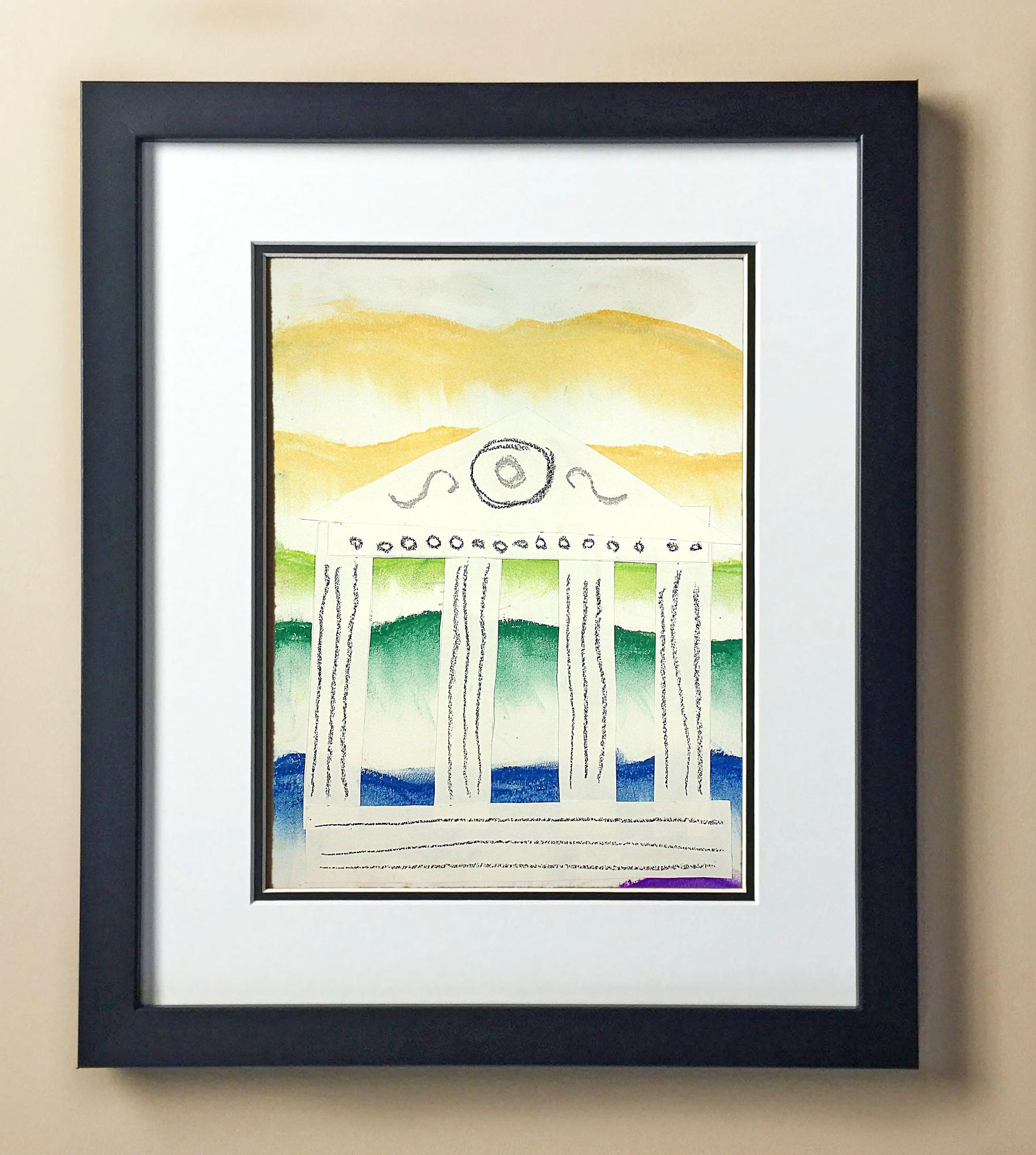 Included with the purchase is the Students Artwork, Frame, double matboard, shatter proof plexiglass, and a ready to hang backerboard with turnbuttons
