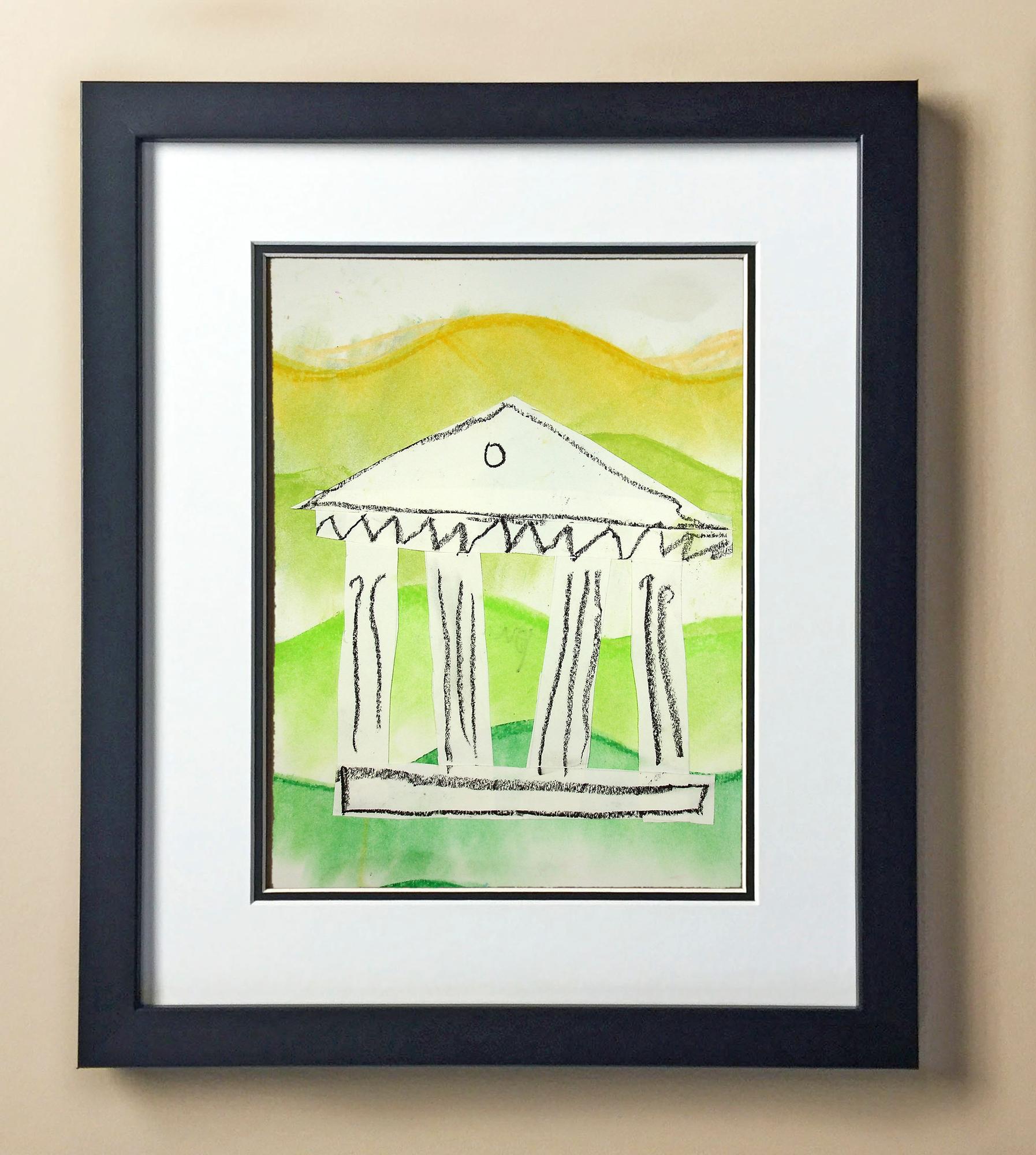 Included with the purchase is the Students Artwork, Frame, double matboard, shatter proof plexiglass, and a ready to hang backerboard with turnbuttons