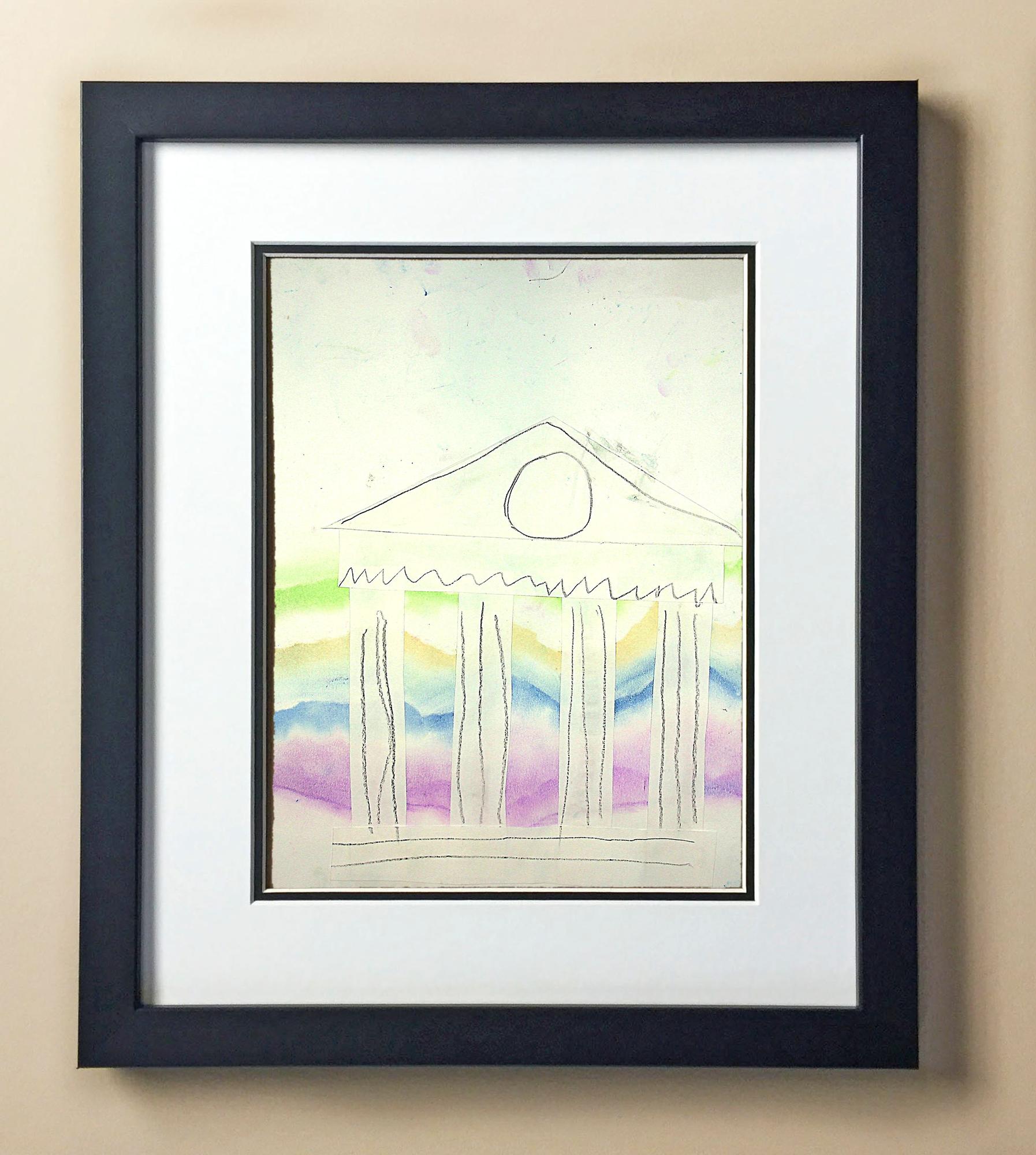 Included with the purchase is the Students Artwork, Frame, double matboard, shatter proof plexiglass, and a ready to hang backerboard with turnbuttons