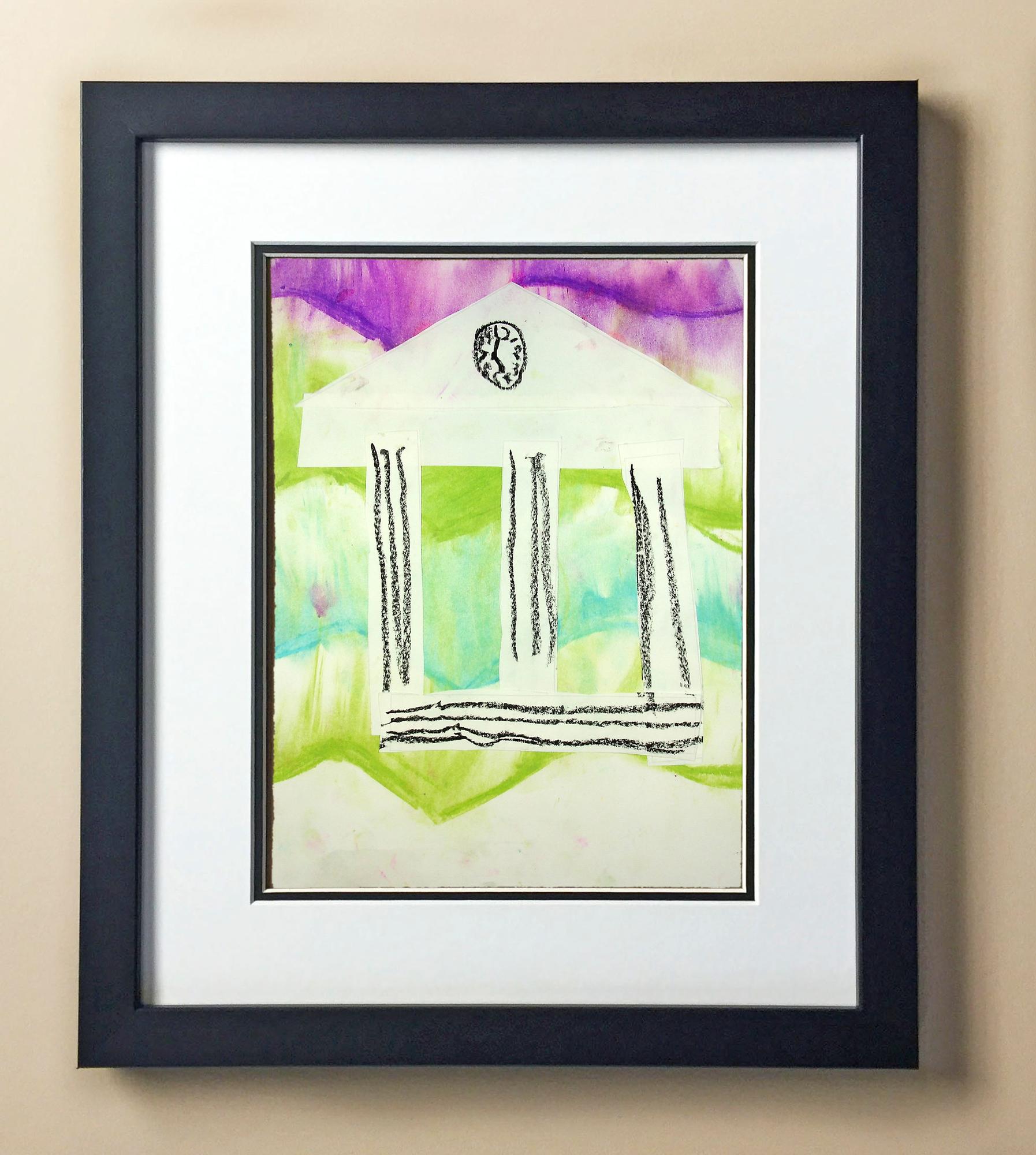 Included with the purchase is the Students Artwork, Frame, double matboard, shatter proof plexiglass, and a ready to hang backerboard with turnbuttons