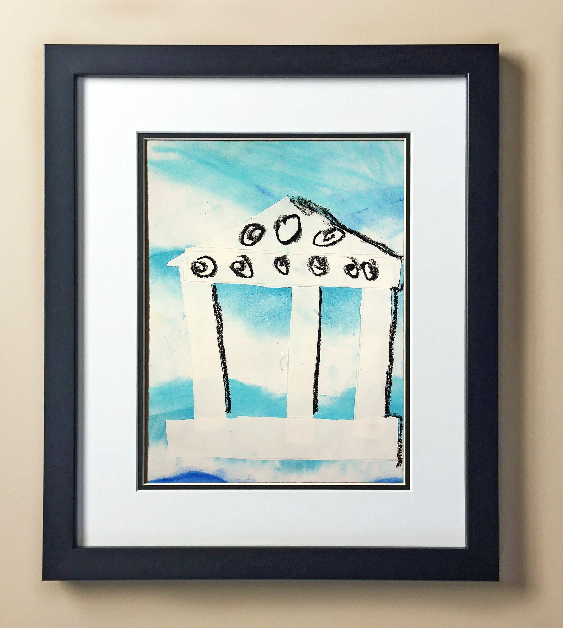 Included with the purchase is the Students Artwork, Frame, double matboard, shatter proof plexiglass, and a ready to hang backerboard with turnbuttons