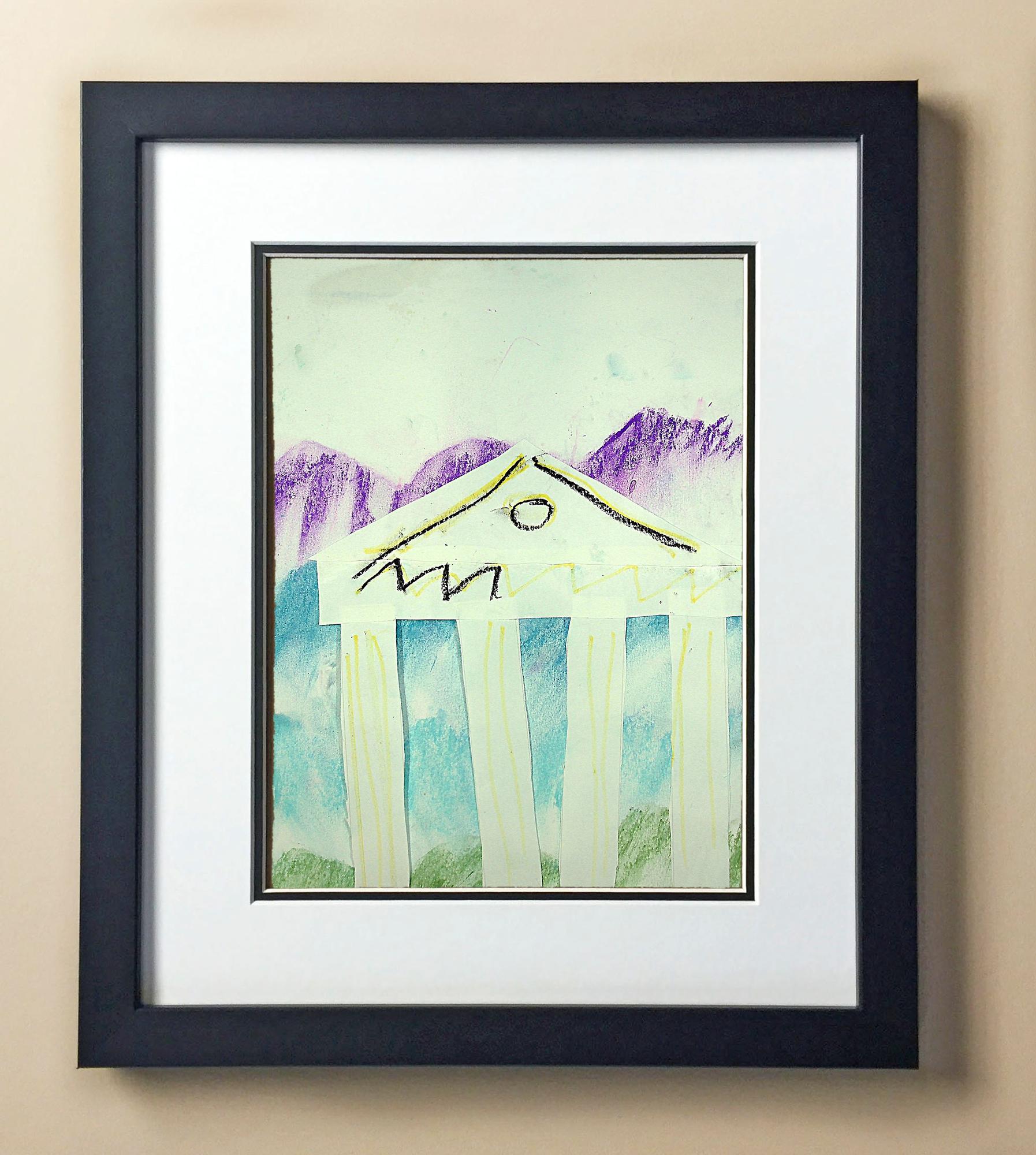 Included with the purchase is the Students Artwork, Frame, double matboard, shatter proof plexiglass, and a ready to hang backerboard with turnbuttons