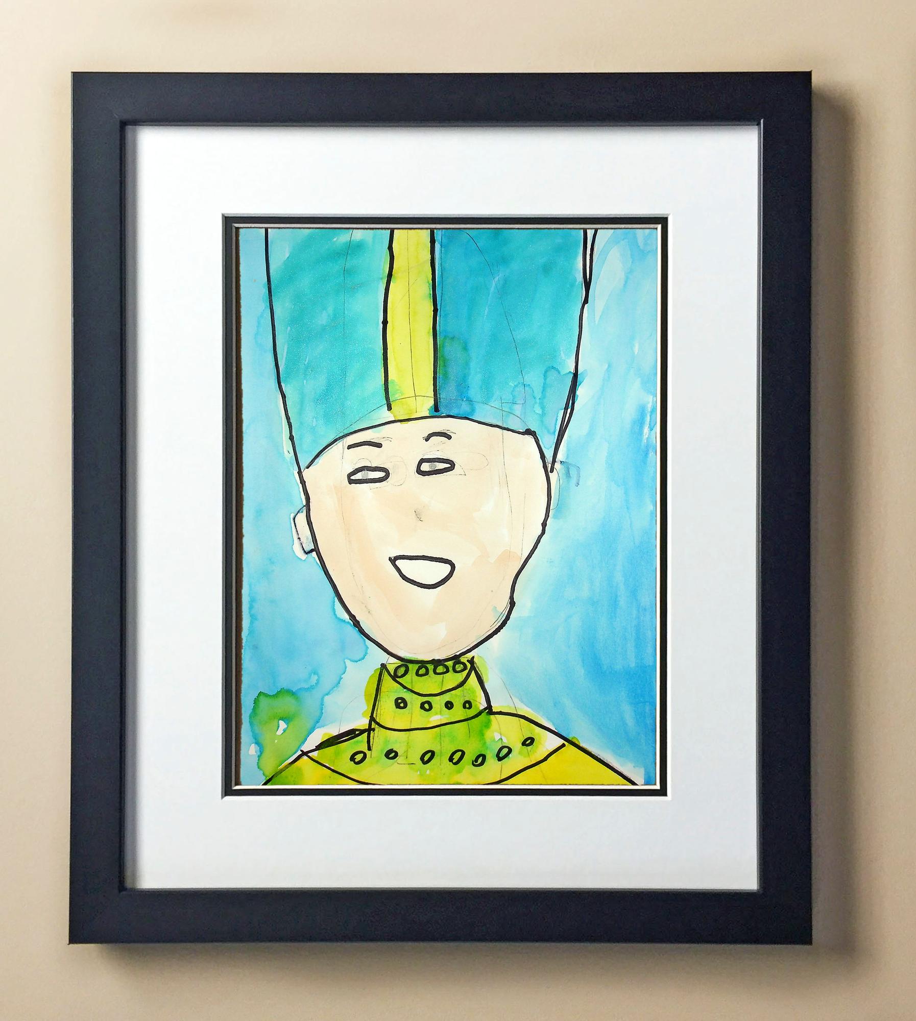 Included with the purchase is the Students Artwork, Frame, double matboard, shatter proof plexiglass, and a ready to hang backerboard with turnbuttons
