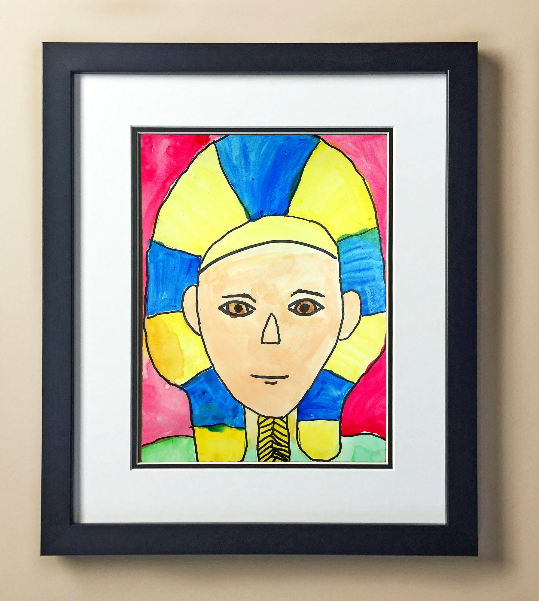 Included with the purchase is the Students Artwork, Frame, double matboard, shatter proof plexiglass, and a ready to hang backerboard with turnbuttons