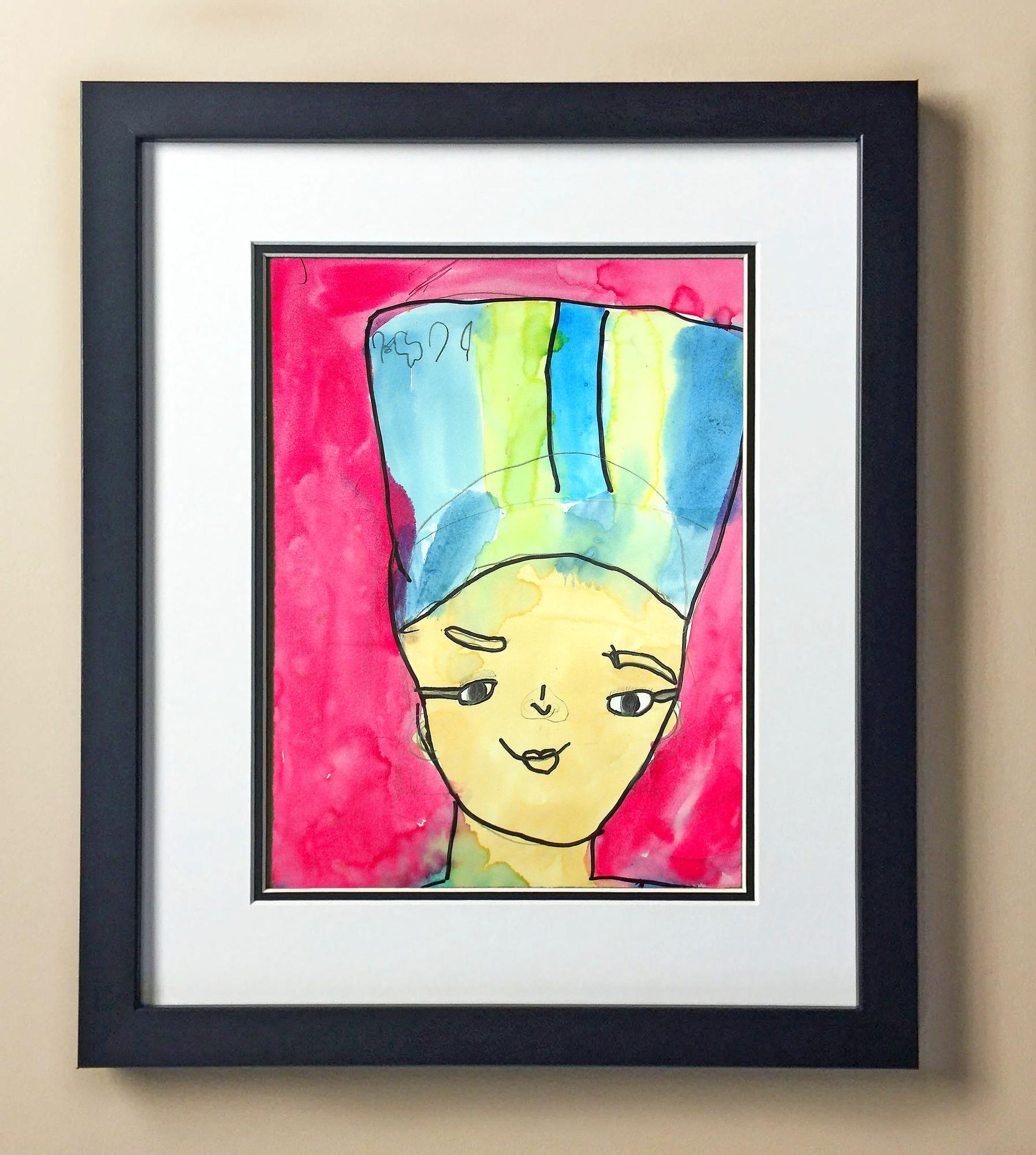 Included with the purchase is the Students Artwork, Frame, double matboard, shatter proof plexiglass, and a ready to hang backerboard with turnbuttons
