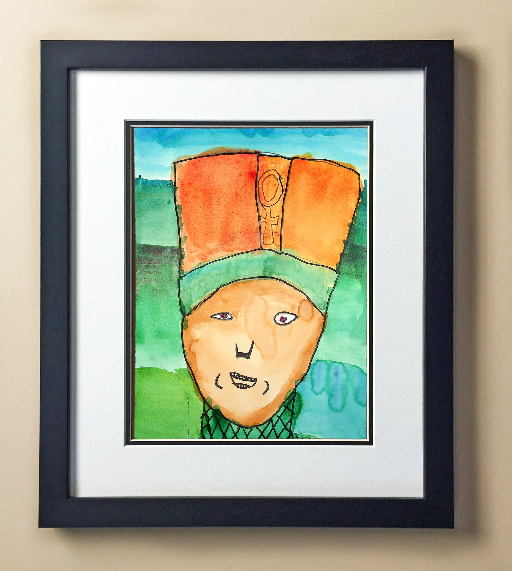 Included with the purchase is the Students Artwork, Frame, double matboard, shatter proof plexiglass, and a ready to hang backerboard with turnbuttons