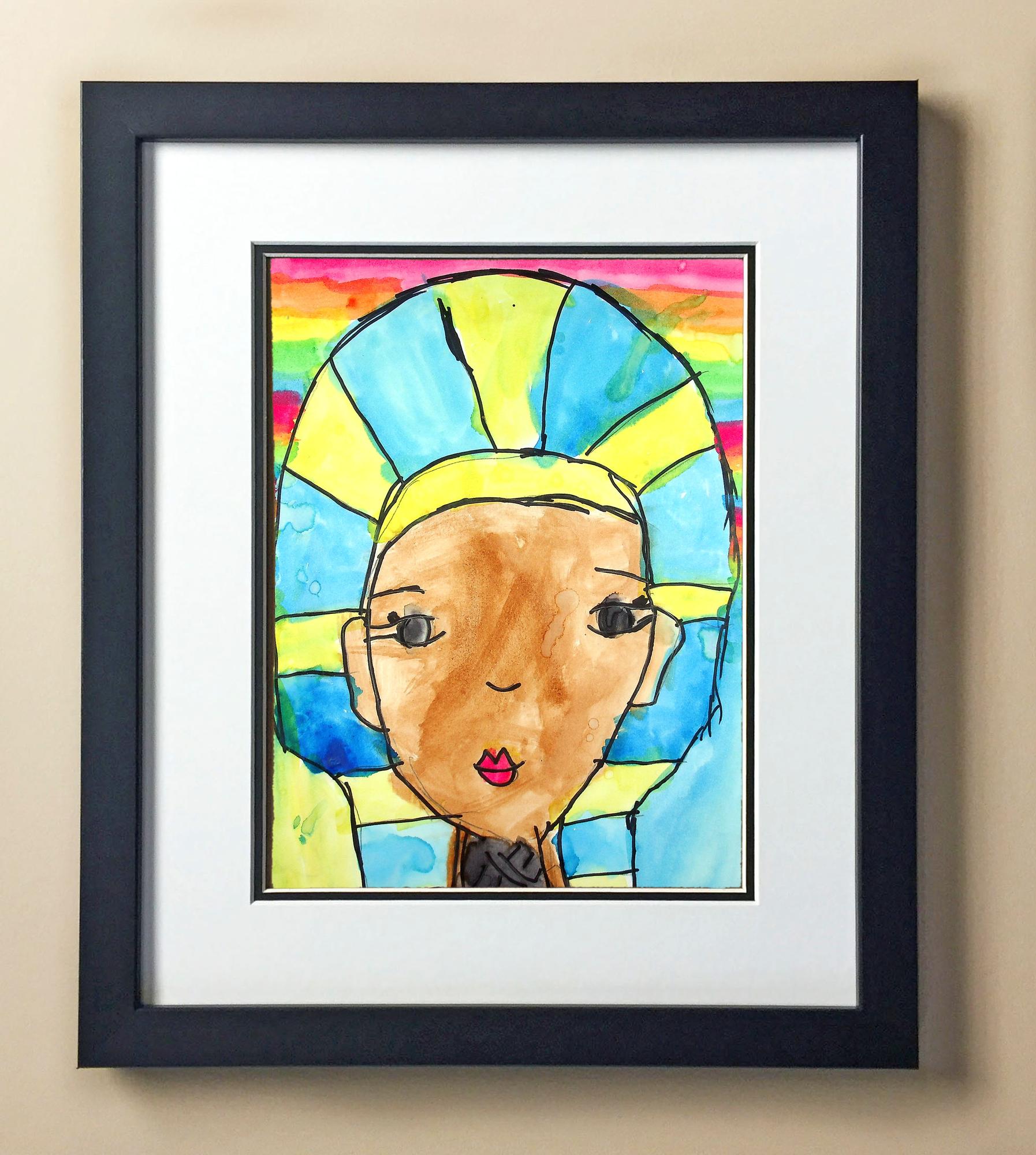 Included with the purchase is the Students Artwork, Frame, double matboard, shatter proof plexiglass, and a ready to hang backerboard with turnbuttons