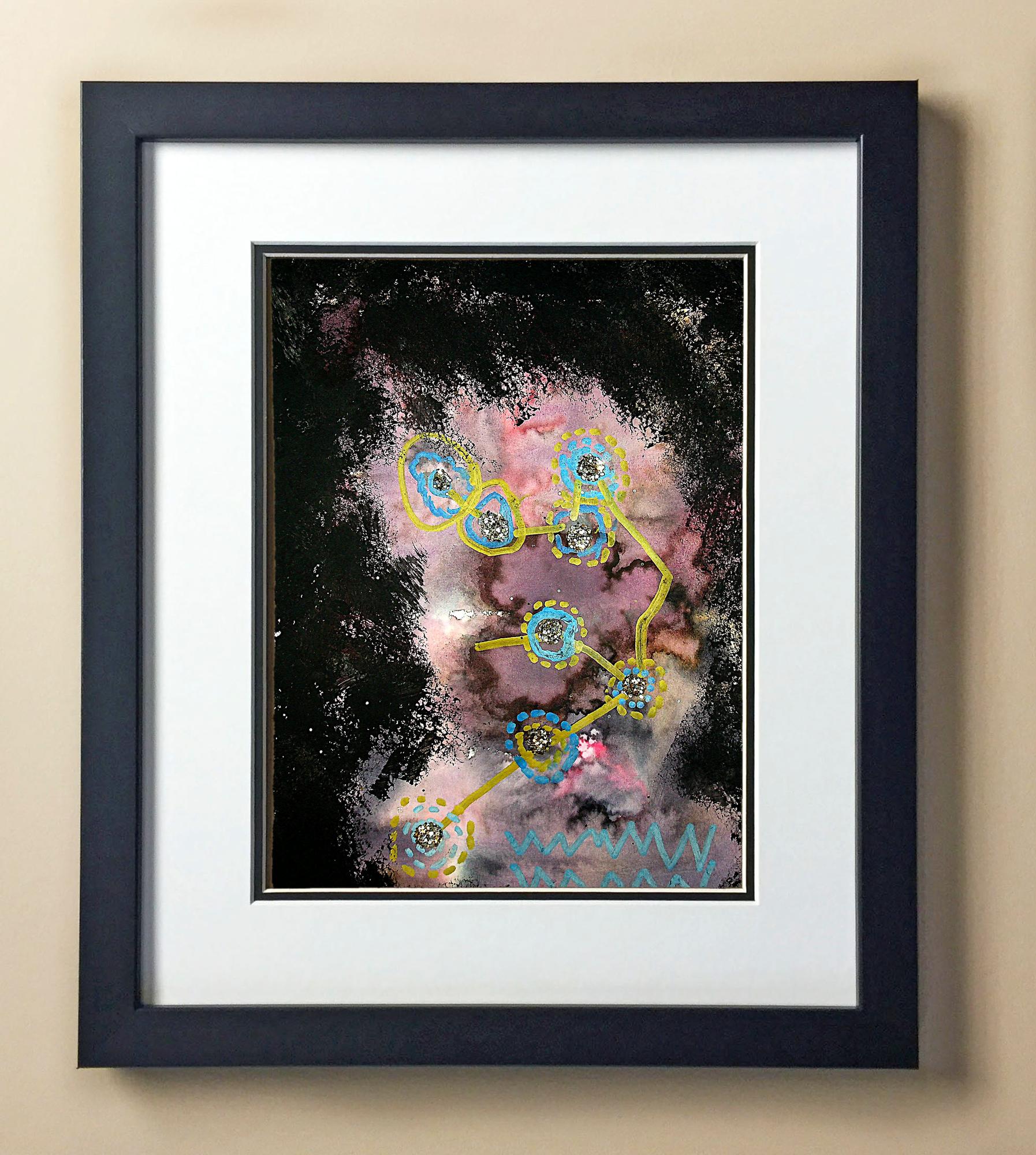 Included with the purchase is the Students Artwork, Frame, double matboard, shatter proof plexiglass, and a ready to hang backerboard with turnbuttons