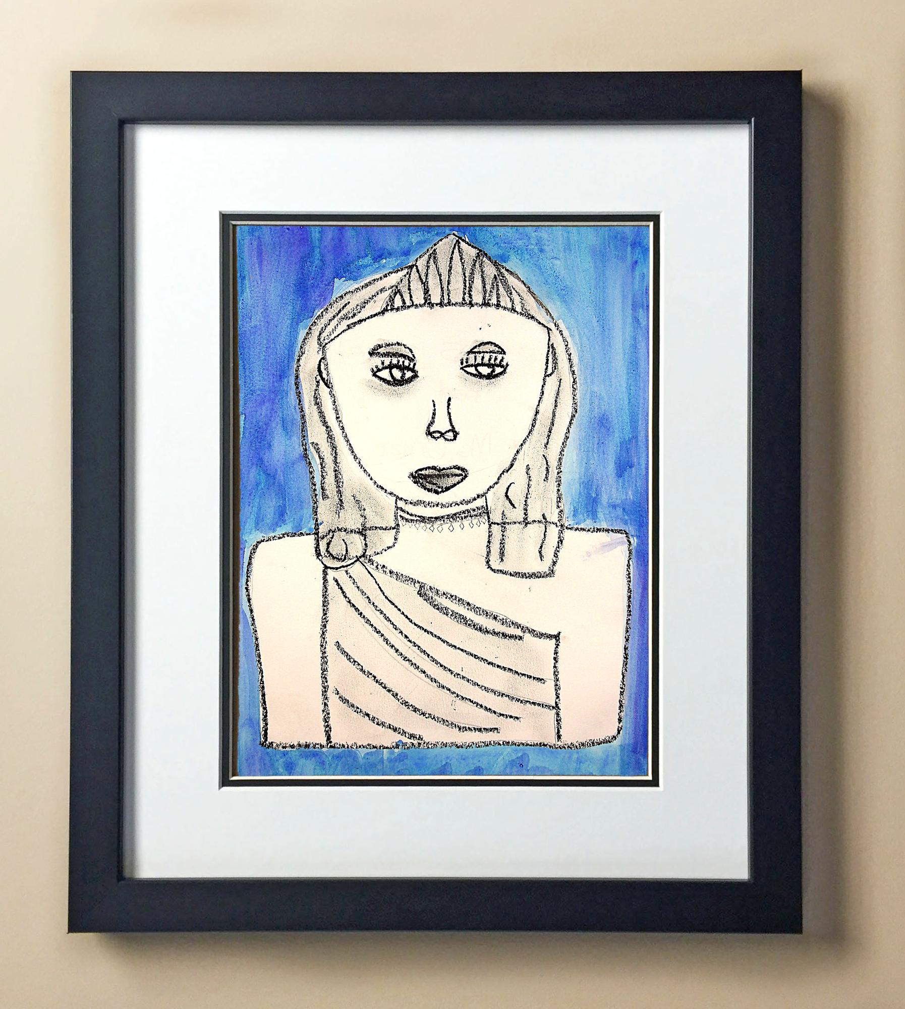 Included with the purchase is the Students Artwork, Frame, double matboard, shatter proof plexiglass, and a ready to hang backerboard with turnbuttons